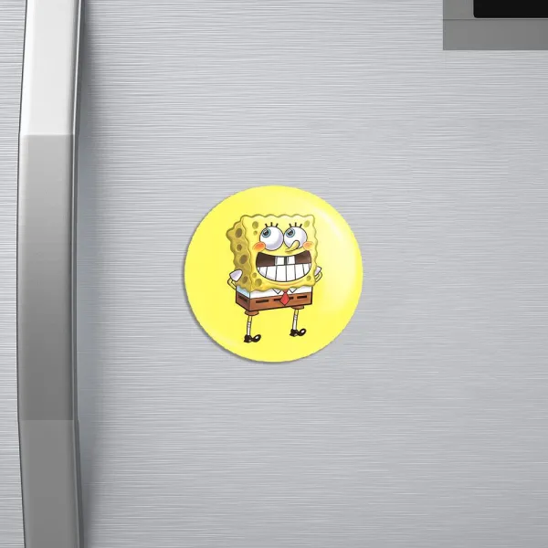 مگنت باب اسفنجی خندالو با روکش سلفون مات مخملی ضدخش و قطعه پشتی فلزی تولید شده است که آهنربای اتمی بکار برده شده در محصول، بصورت مخفی تعبیه شده ودیده نمی شود. ضمن اینکه گیرایی بسیار بالایی داشته و به هیچ عنوان از روی یخچال نمی افتد.