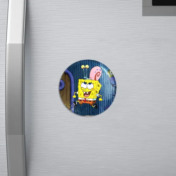مگنت باب اسفنجی خندالو با روکش سلفون مات مخملی ضدخش و قطعه پشتی فلزی تولید شده است که آهنربای اتمی بکار برده شده در محصول، بصورت مخفی تعبیه شده ودیده نمی شود. ضمن اینکه گیرایی بسیار بالایی داشته و به هیچ عنوان از روی یخچال نمی افتد.