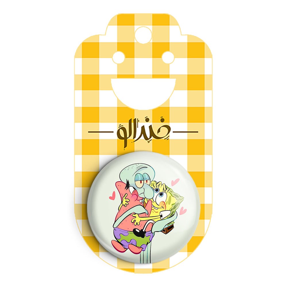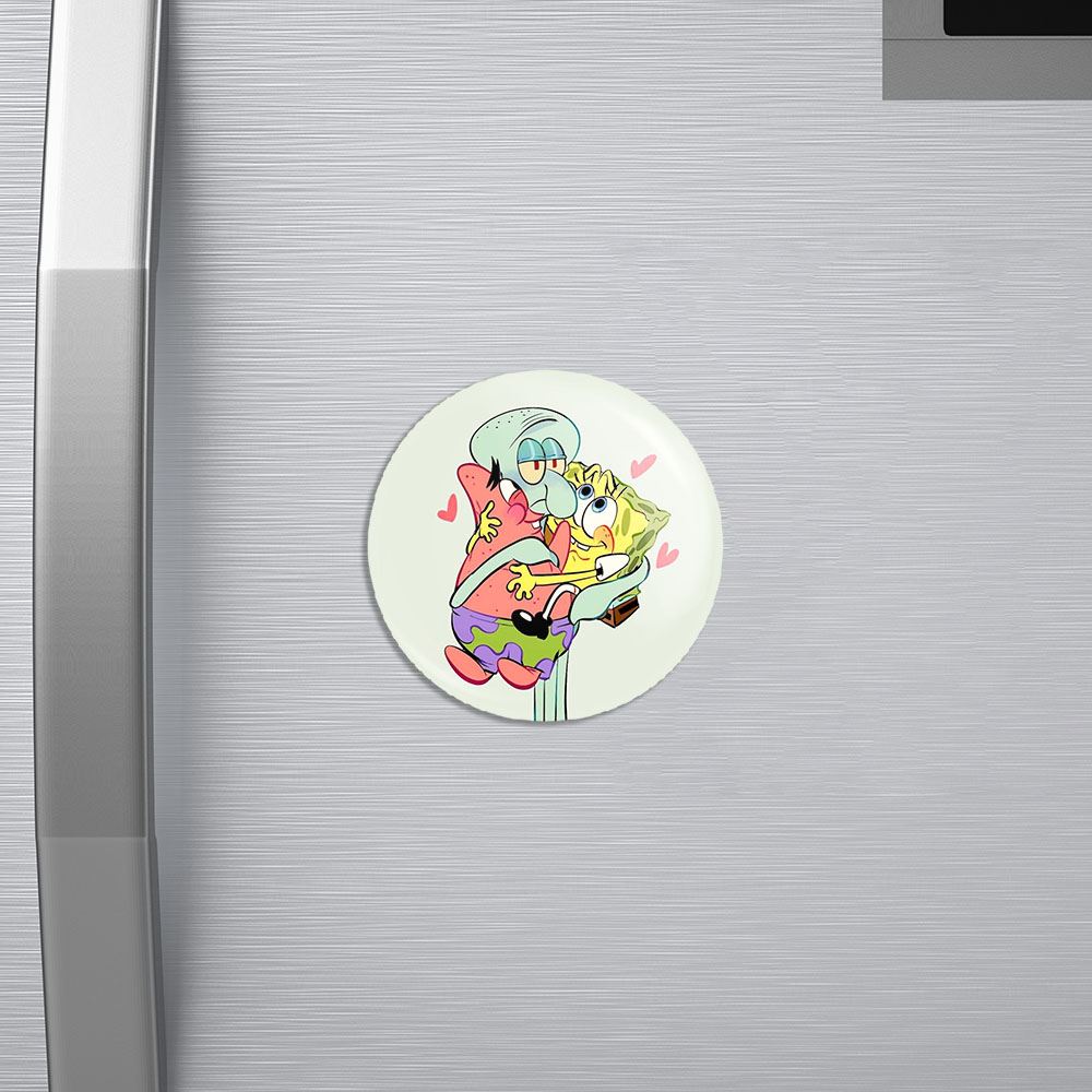 مگنت باب اسفنجی خندالو با روکش سلفون مات مخملی ضدخش و قطعه پشتی فلزی تولید شده است که آهنربای اتمی بکار برده شده در محصول، بصورت مخفی تعبیه شده ودیده نمی شود. ضمن اینکه گیرایی بسیار بالایی داشته و به هیچ عنوان از روی یخچال نمی افتد.