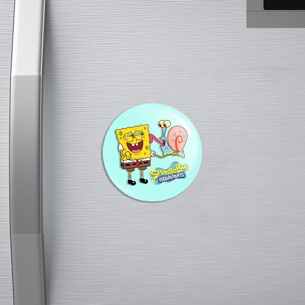 مگنت باب اسفنجی خندالو با روکش سلفون مات مخملی ضدخش و قطعه پشتی فلزی تولید شده است که آهنربای اتمی بکار برده شده در محصول، بصورت مخفی تعبیه شده ودیده نمی شود. ضمن اینکه گیرایی بسیار بالایی داشته و به هیچ عنوان از روی یخچال نمی افتد.