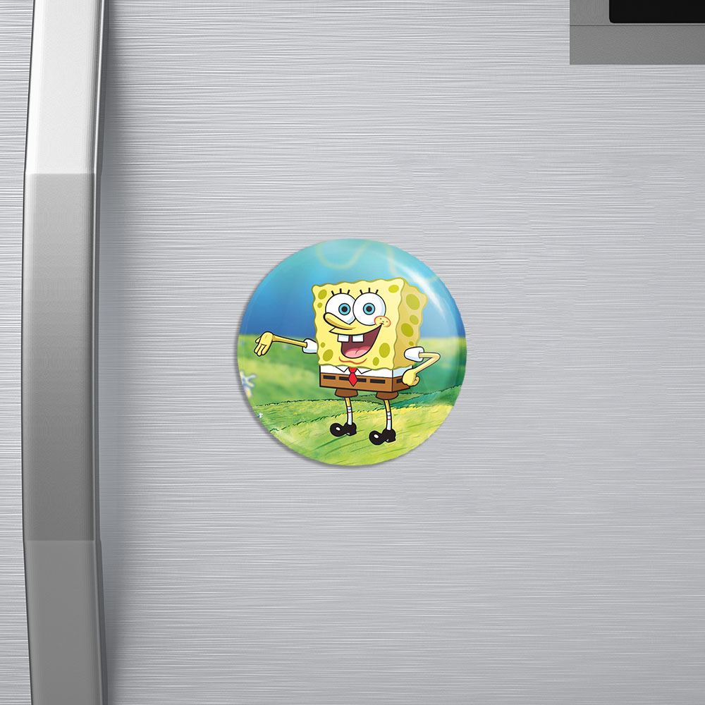 مگنت باب اسفنجی خندالو با روکش سلفون مات مخملی ضدخش و قطعه پشتی فلزی تولید شده است که آهنربای اتمی بکار برده شده در محصول، بصورت مخفی تعبیه شده ودیده نمی شود. ضمن اینکه گیرایی بسیار بالایی داشته و به هیچ عنوان از روی یخچال نمی افتد.