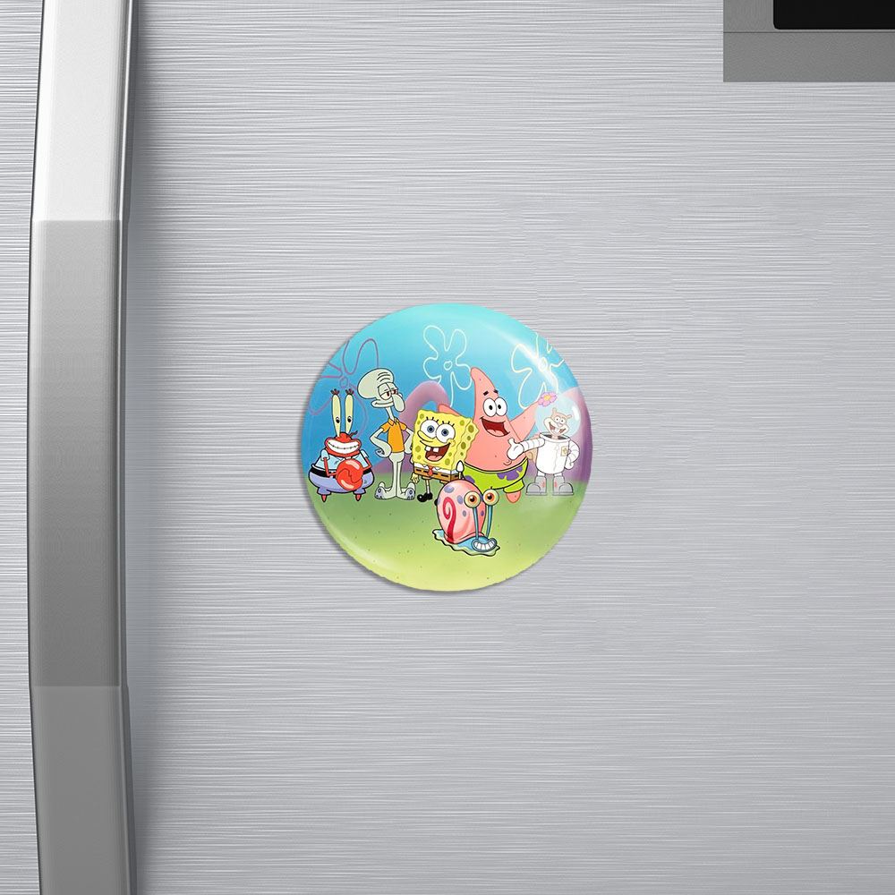 مگنت باب اسفنجی خندالو با روکش سلفون مات مخملی ضدخش و قطعه پشتی فلزی تولید شده است که آهنربای اتمی بکار برده شده در محصول، بصورت مخفی تعبیه شده ودیده نمی شود. ضمن اینکه گیرایی بسیار بالایی داشته و به هیچ عنوان از روی یخچال نمی افتد.