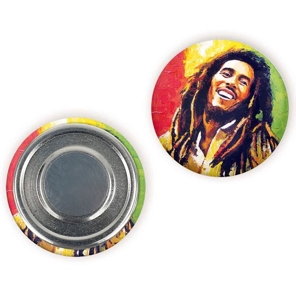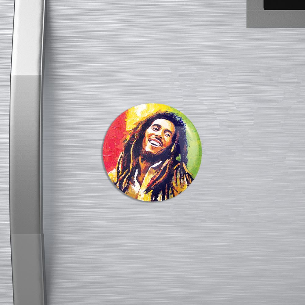 مگنت باب مارلی Bob Marley خندالو با روکش سلفون مات مخملی ضدخش و قطعه پشتی فلزی تولید شده است که آهنربای اتمی بکار برده شده در محصول، بصورت مخفی تعبیه شده ودیده نمی شود. ضمن اینکه گیرایی بسیار بالایی داشته و به هیچ عنوان از روی یخچال نمی افتد.