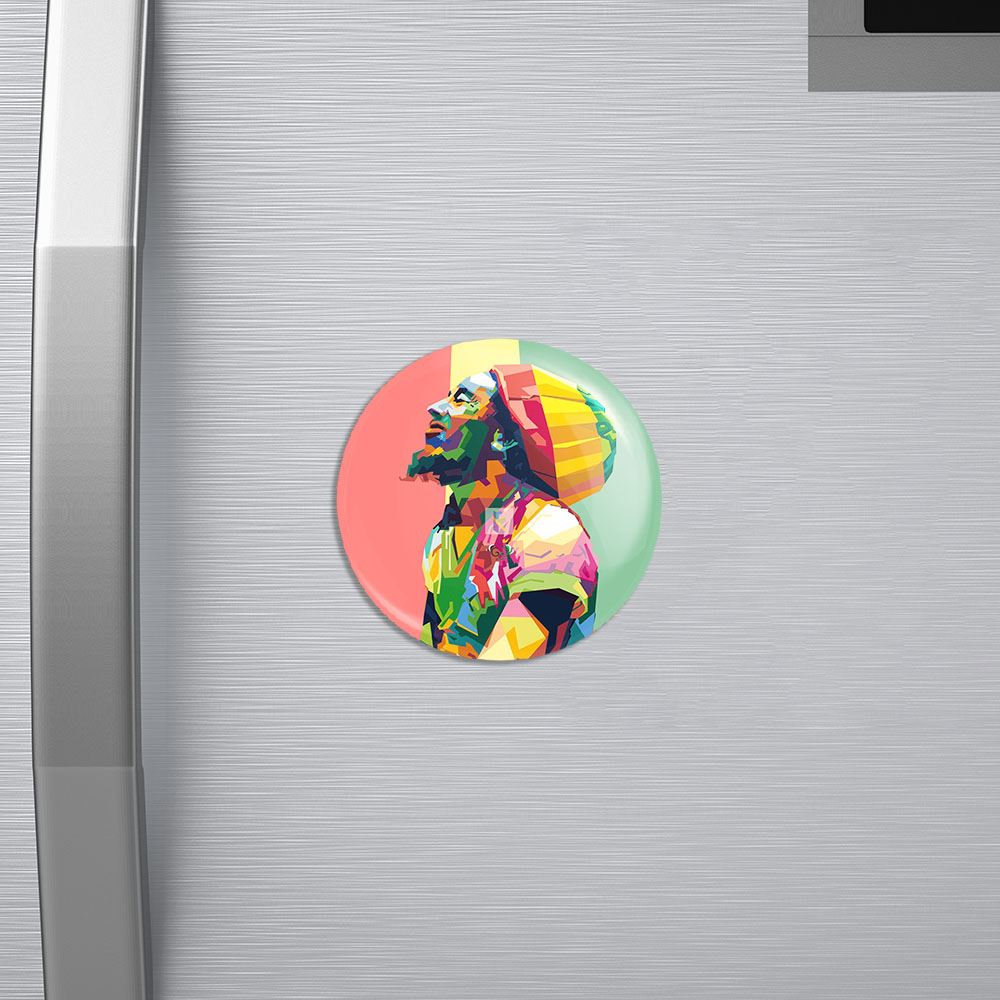 مگنت باب مارلی Bob Marley خندالو با روکش سلفون مات مخملی ضدخش و قطعه پشتی فلزی تولید شده است که آهنربای اتمی بکار برده شده در محصول، بصورت مخفی تعبیه شده ودیده نمی شود. ضمن اینکه گیرایی بسیار بالایی داشته و به هیچ عنوان از روی یخچال نمی افتد. نکته مهم این است که به دلیل مخفی بودن آهنربا، هیچگونه خط و خش و زدگی بر روی یخچال ایجاد نخواهد شد. چاپ مگنت یخچال باب مارلی Bob Marley نیز با دستگاه های استاندارد و با بهترین سطح کیفیت صورت گرفته و طرح با شفافیتی مثال زدنی و با سلفون چسبی تولید شده است که باعث شده محصول نهایی بدون شکست نور دیده شود. همچنین بسته بندی جذاب و مینیمال مگنت های یخچالی، آنها را مناسب هدیه کرده است. مگنت باب مارلی Bob Marley خندالو علاوه بر روی یخچال بر هر سطح فلزی دیگری مثل لولای در اتاق، کمد های آهنی و … نیز قابل نصب است.
