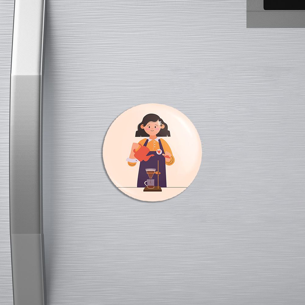 مگنت باریستا کافه چی خندالو با روکش سلفون مات مخملی ضدخش و قطعه پشتی فلزی تولید شده است که آهنربای اتمی بکار برده شده در محصول، بصورت مخفی تعبیه شده ودیده نمی شود. ضمن اینکه گیرایی بسیار بالایی داشته و به هیچ عنوان از روی یخچال نمی افتد. نکته مهم این است که به دلیل مخفی بودن آهنربا، هیچگونه خط و خش و زدگی بر روی یخچال ایجاد نخواهد شد. چاپ مگنت یخچال باریستا کافه چی نیز با دستگاه های استاندارد و با بهترین سطح کیفیت صورت گرفته و طرح با شفافیتی مثال زدنی و با سلفون چسبی تولید شده است که باعث شده محصول نهایی بدون شکست نور دیده شود. همچنین بسته بندی جذاب و مینیمال مگنت های یخچالی، آنها را مناسب هدیه کرده است. مگنت باریستا کافه چی خندالو علاوه بر روی یخچال بر هر سطح فلزی دیگری مثل لولای در اتاق، کمد های آهنی و … نیز قابل نصب است.