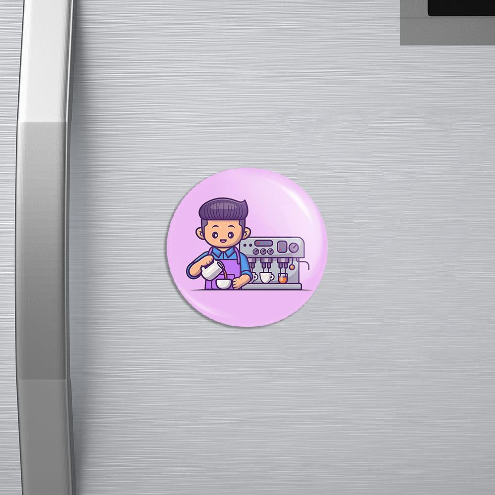 مگنت باریستا کافه چی خندالو با روکش سلفون مات مخملی ضدخش و قطعه پشتی فلزی تولید شده است که آهنربای اتمی بکار برده شده در محصول، بصورت مخفی تعبیه شده ودیده نمی شود. ضمن اینکه گیرایی بسیار بالایی داشته و به هیچ عنوان از روی یخچال نمی افتد. نکته مهم این است که به دلیل مخفی بودن آهنربا، هیچگونه خط و خش و زدگی بر روی یخچال ایجاد نخواهد شد. چاپ مگنت یخچال باریستا کافه چی نیز با دستگاه های استاندارد و با بهترین سطح کیفیت صورت گرفته و طرح با شفافیتی مثال زدنی و با سلفون چسبی تولید شده است که باعث شده محصول نهایی بدون شکست نور دیده شود. همچنین بسته بندی جذاب و مینیمال مگنت های یخچالی، آنها را مناسب هدیه کرده است. مگنت باریستا کافه چی خندالو علاوه بر روی یخچال بر هر سطح فلزی دیگری مثل لولای در اتاق، کمد های آهنی و … نیز قابل نصب است.