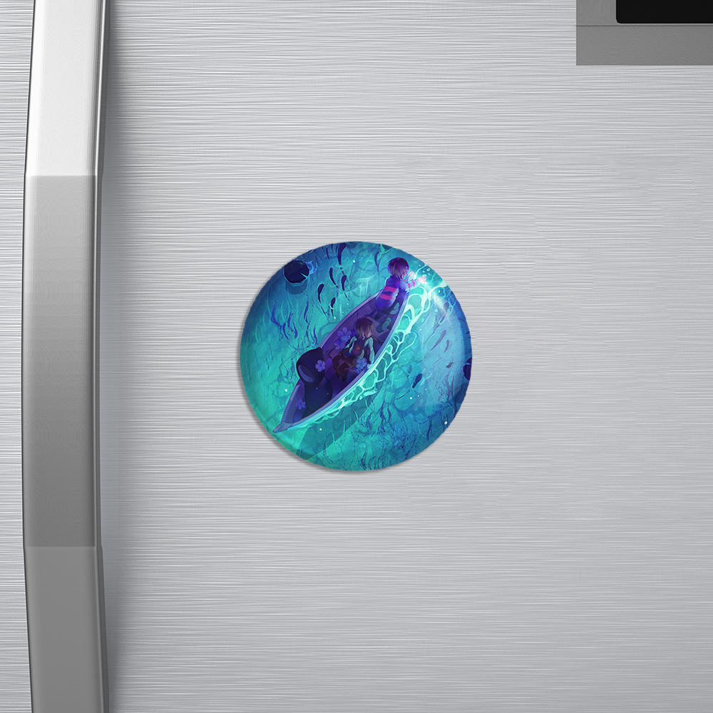 مگنت بازی آندرتیل (Undertale) خندالو با روکش سلفون مات مخملی ضدخش و قطعه پشتی فلزی تولید شده است که آهنربای اتمی بکار برده شده در محصول، بصورت مخفی تعبیه شده ودیده نمی شود. ضمن اینکه گیرایی بسیار بالایی داشته و به هیچ عنوان از روی یخچال نمی افتد.