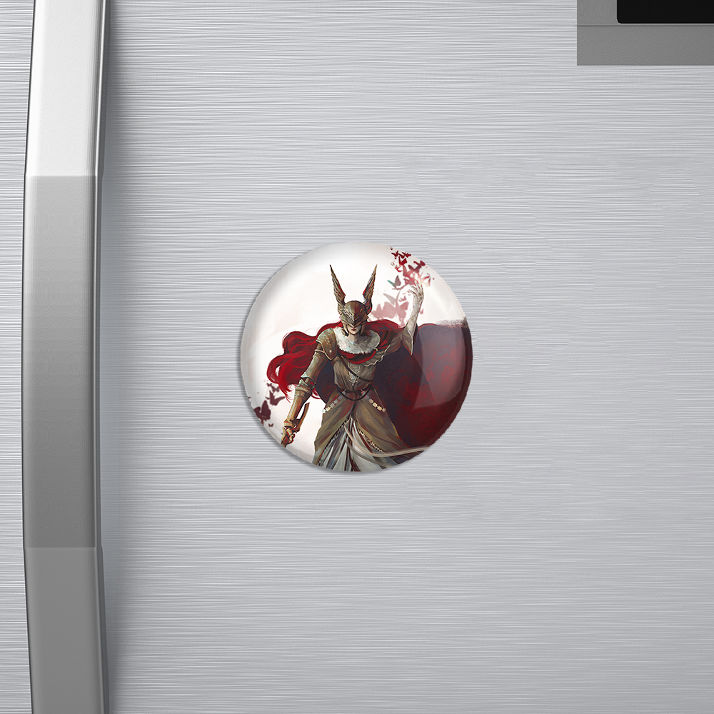 مگنت بازی الدن رینگ (Elden Ring) خندالو با روکش سلفون مات مخملی ضدخش و قطعه پشتی فلزی تولید شده است که آهنربای اتمی بکار برده شده در محصول، بصورت مخفی تعبیه شده ودیده نمی شود. ضمن اینکه گیرایی بسیار بالایی داشته و به هیچ عنوان از روی یخچال نمی افتد.