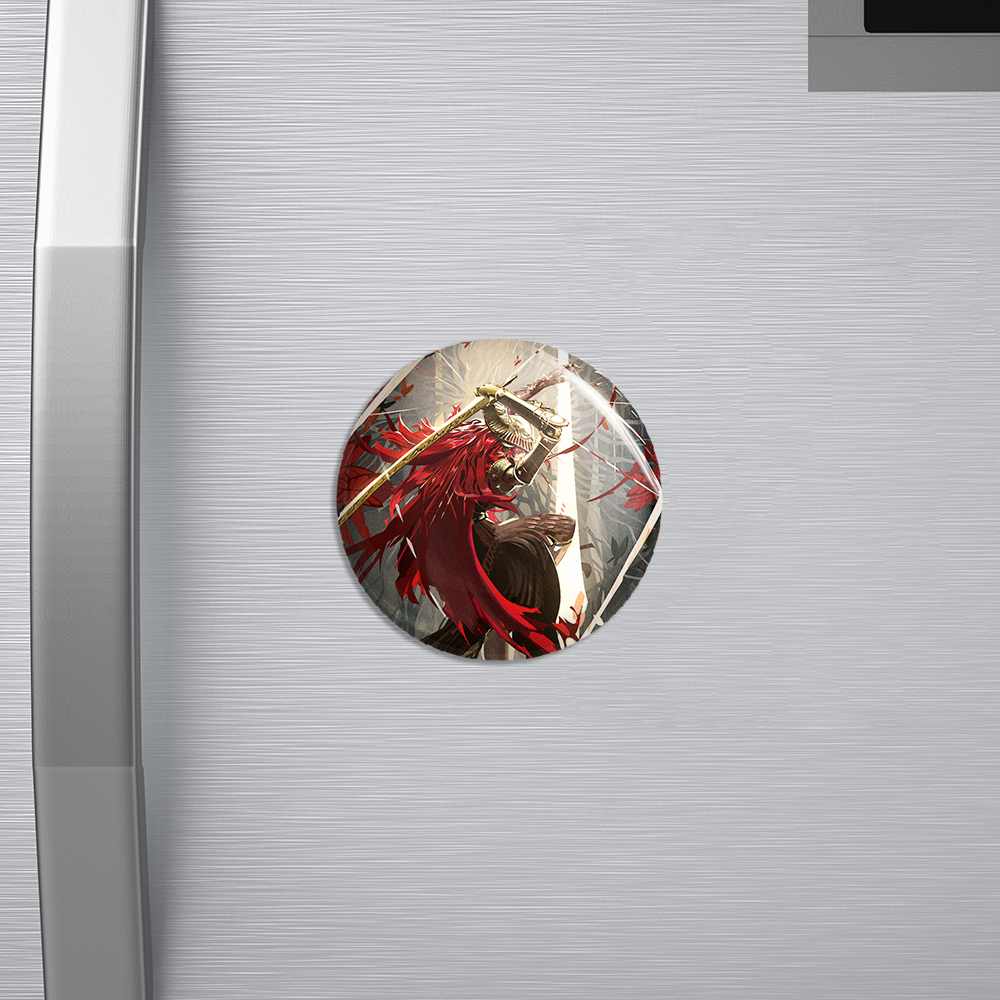 مگنت بازی الدن رینگ (Elden Ring) خندالو با روکش سلفون مات مخملی ضدخش و قطعه پشتی فلزی تولید شده است که آهنربای اتمی بکار برده شده در محصول، بصورت مخفی تعبیه شده ودیده نمی شود. ضمن اینکه گیرایی بسیار بالایی داشته و به هیچ عنوان از روی یخچال نمی افتد.