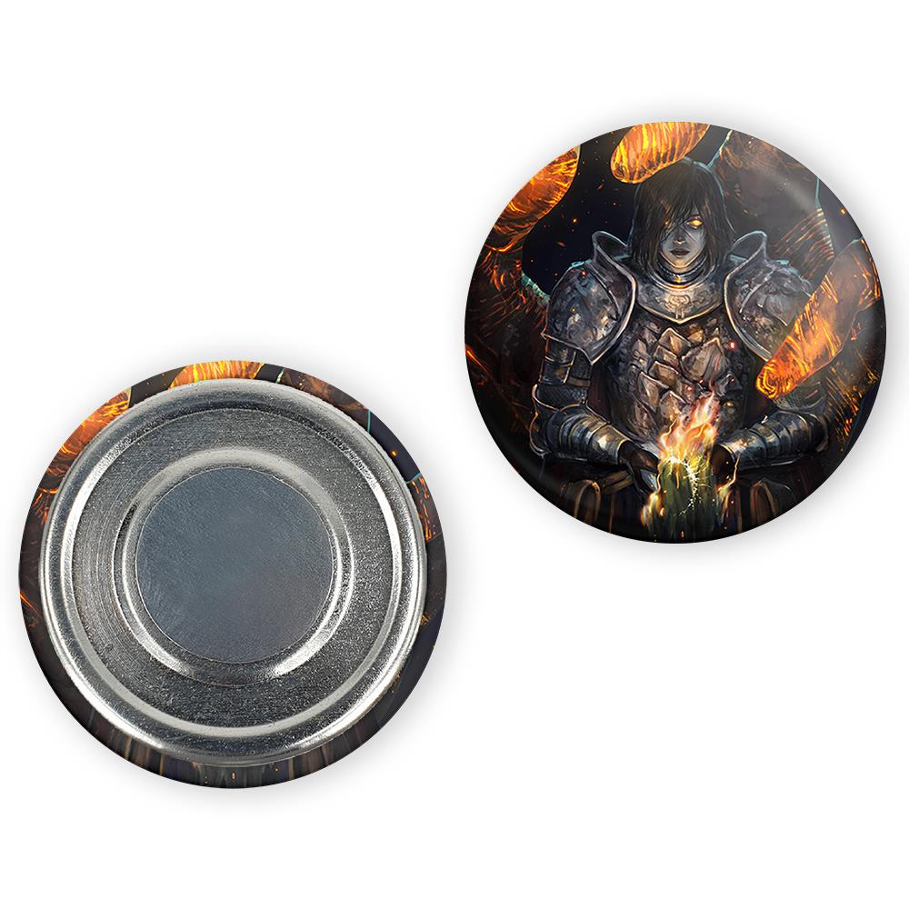 مگنت بازی الدن رینگ (Elden Ring) خندالو با روکش سلفون مات مخملی ضدخش و قطعه پشتی فلزی تولید شده است که آهنربای اتمی بکار برده شده در محصول، بصورت مخفی تعبیه شده ودیده نمی شود. ضمن اینکه گیرایی بسیار بالایی داشته و به هیچ عنوان از روی یخچال نمی افتد.