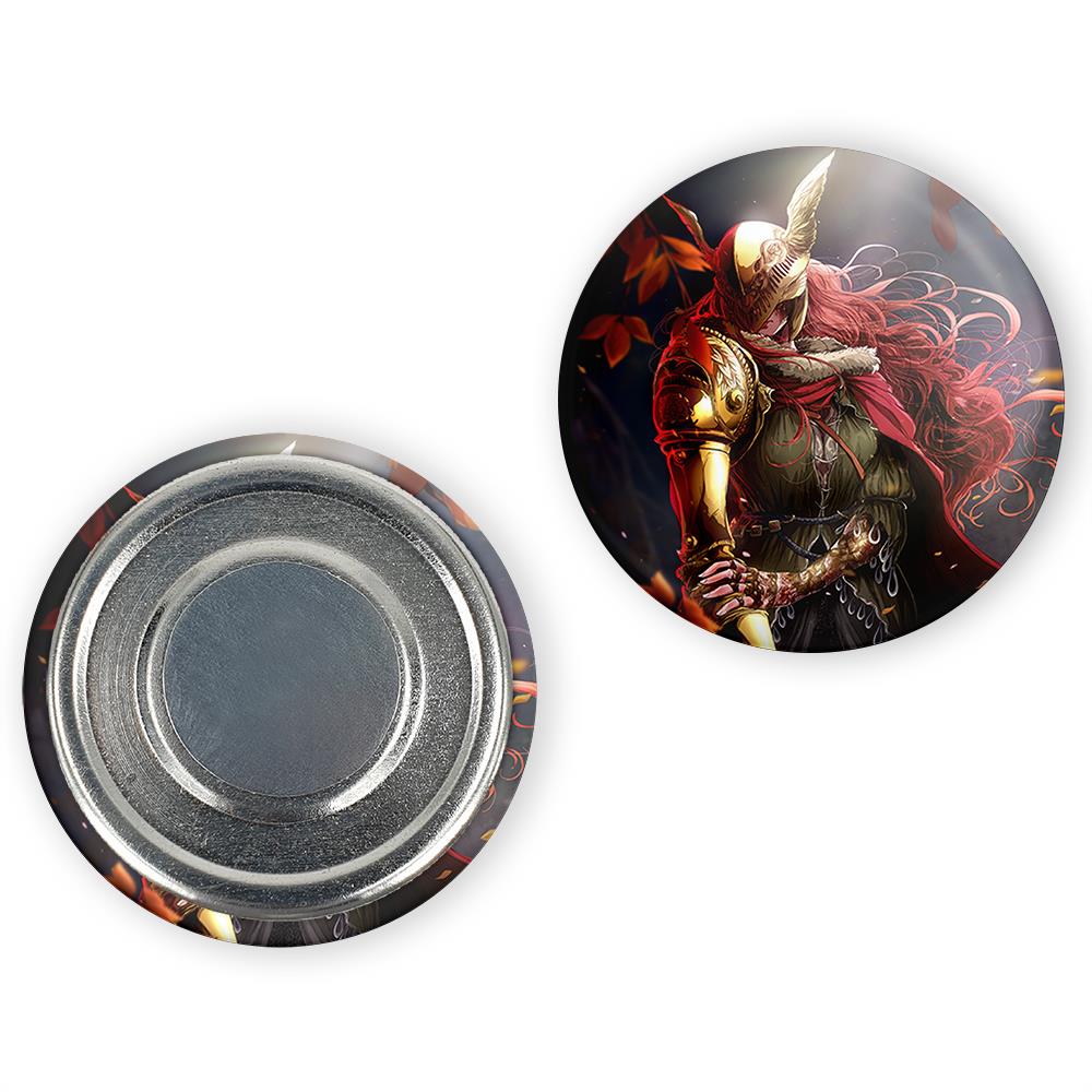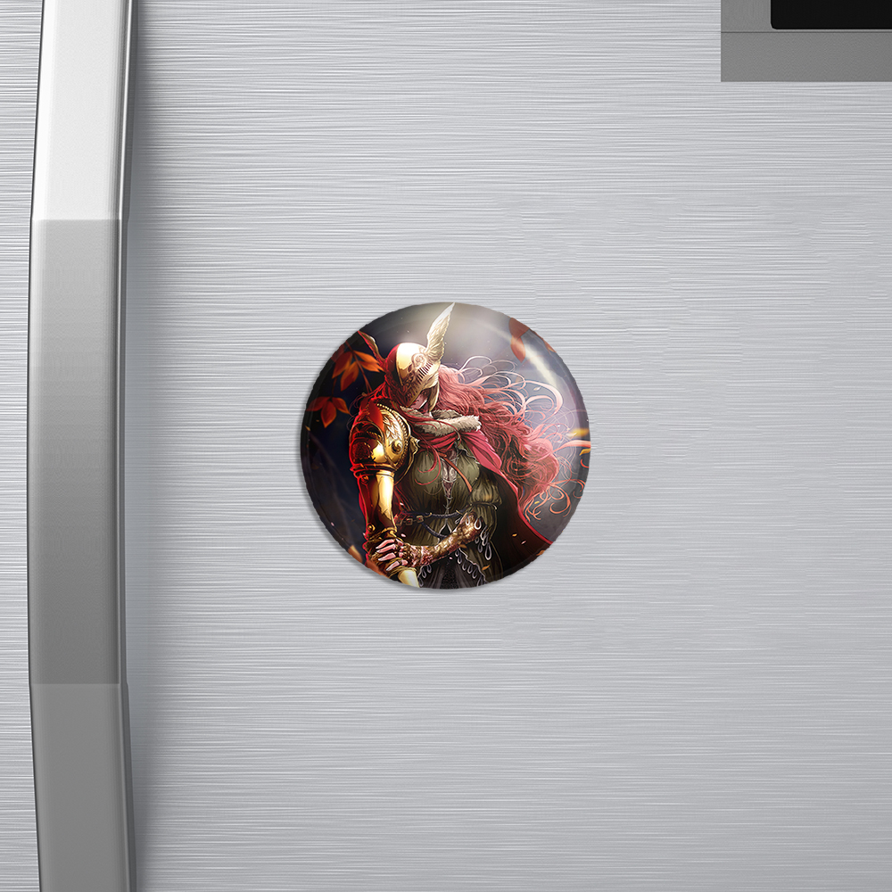 مگنت بازی الدن رینگ (Elden Ring) خندالو با روکش سلفون مات مخملی ضدخش و قطعه پشتی فلزی تولید شده است که آهنربای اتمی بکار برده شده در محصول، بصورت مخفی تعبیه شده ودیده نمی شود. ضمن اینکه گیرایی بسیار بالایی داشته و به هیچ عنوان از روی یخچال نمی افتد.