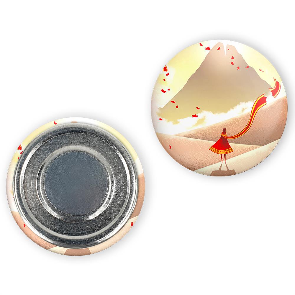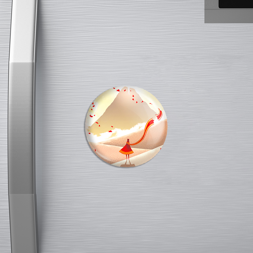 مگنت بازی جورنی (Journey) خندالو با روکش سلفون مات مخملی ضدخش و قطعه پشتی فلزی تولید شده است که آهنربای اتمی بکار برده شده در محصول، بصورت مخفی تعبیه شده ودیده نمی شود. ضمن اینکه گیرایی بسیار بالایی داشته و به هیچ عنوان از روی یخچال نمی افتد.
