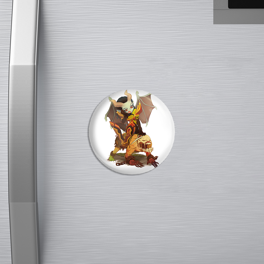 مگنت بازی دوتا (Dota 2) خندالو با روکش سلفون مات مخملی ضدخش و قطعه پشتی فلزی تولید شده است که آهنربای اتمی بکار برده شده در محصول، بصورت مخفی تعبیه شده ودیده نمی شود. ضمن اینکه گیرایی بسیار بالایی داشته و به هیچ عنوان از روی یخچال نمی افتد.