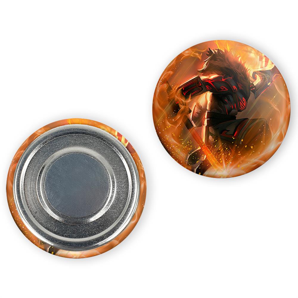مگنت بازی دوتا (Dota 2) خندالو با روکش سلفون مات مخملی ضدخش و قطعه پشتی فلزی تولید شده است که آهنربای اتمی بکار برده شده در محصول، بصورت مخفی تعبیه شده ودیده نمی شود. ضمن اینکه گیرایی بسیار بالایی داشته و به هیچ عنوان از روی یخچال نمی افتد.