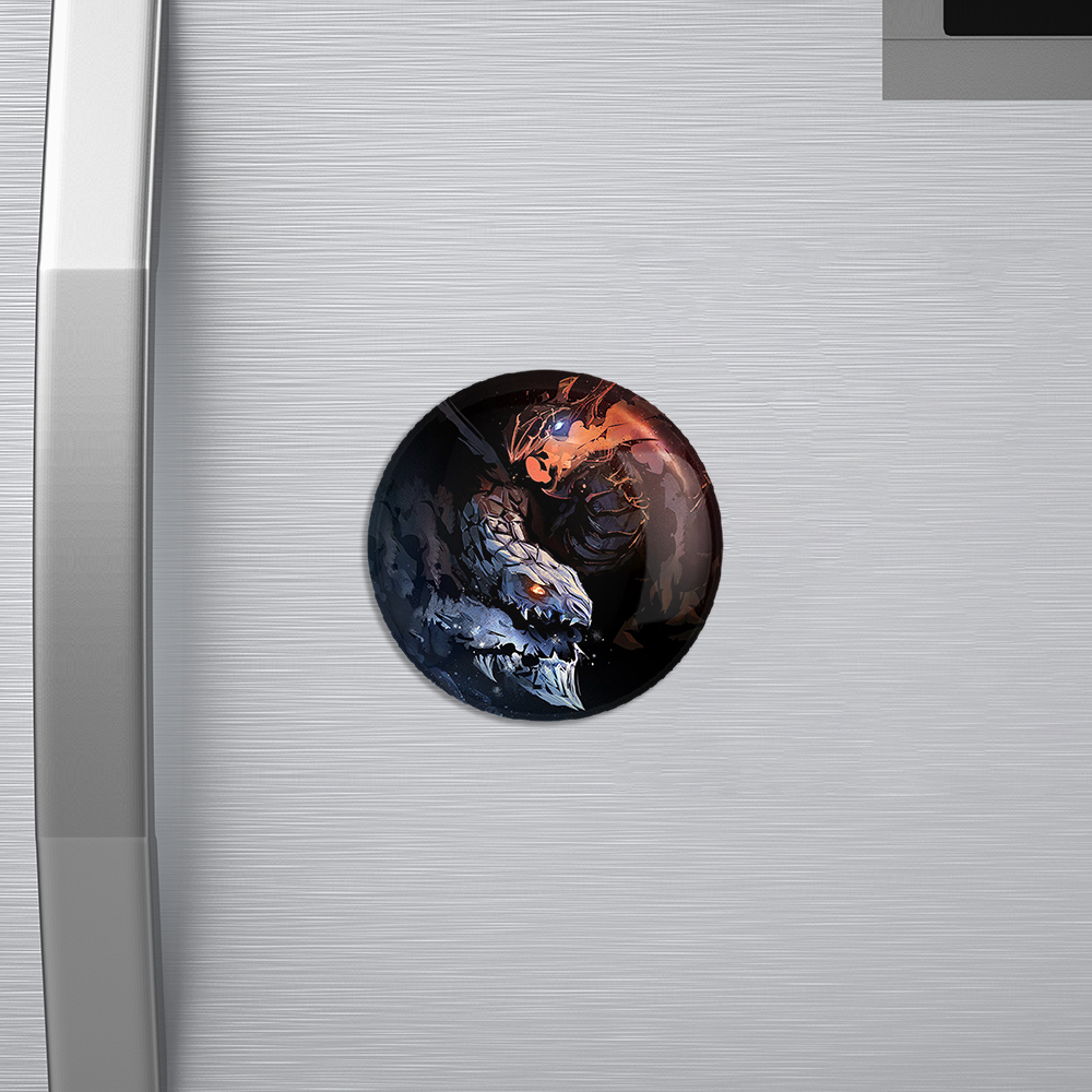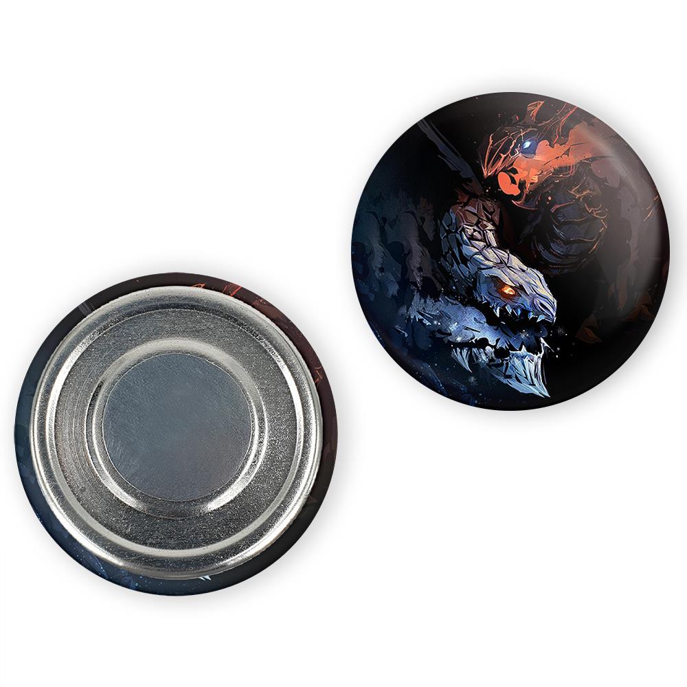 مگنت بازی دوتا (Dota 2) خندالو با روکش سلفون مات مخملی ضدخش و قطعه پشتی فلزی تولید شده است که آهنربای اتمی بکار برده شده در محصول، بصورت مخفی تعبیه شده ودیده نمی شود. ضمن اینکه گیرایی بسیار بالایی داشته و به هیچ عنوان از روی یخچال نمی افتد.