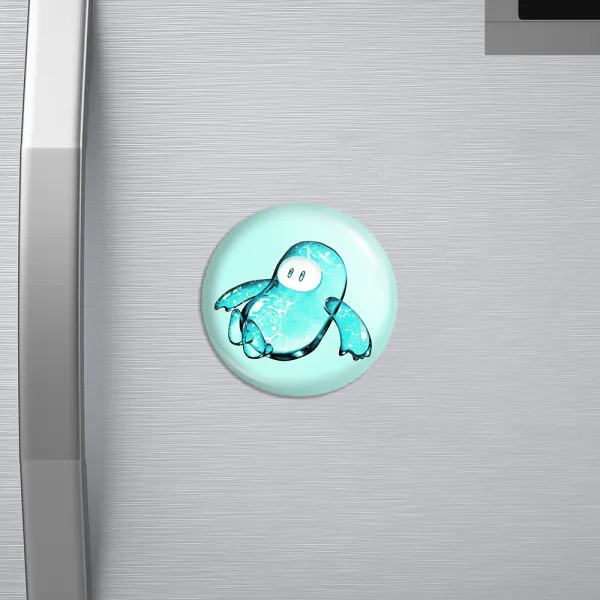 مگنت بازی فال گایز (Fall Guys) خندالو با روکش سلفون مات مخملی ضدخش و قطعه پشتی فلزی تولید شده است که آهنربای اتمی بکار برده شده در محصول، بصورت مخفی تعبیه شده ودیده نمی شود. ضمن اینکه گیرایی بسیار بالایی داشته و به هیچ عنوان از روی یخچال نمی افتد.