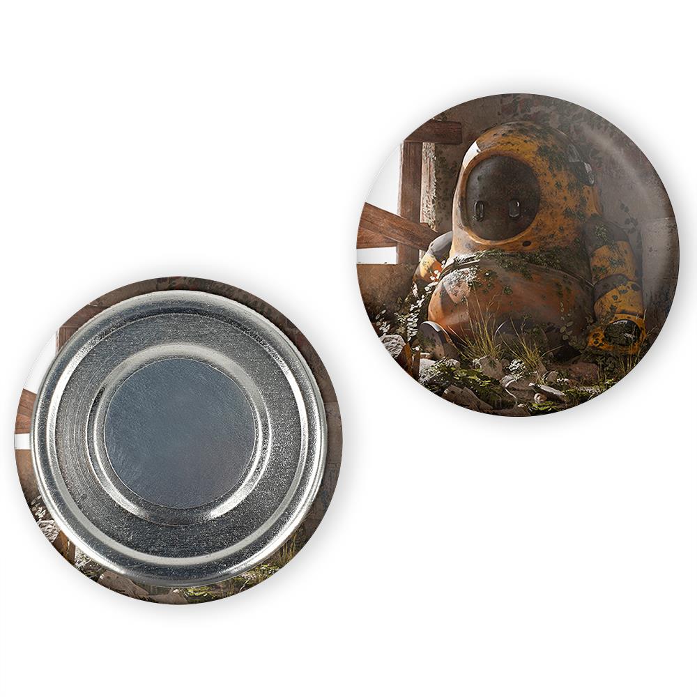 مگنت بازی فال گایز (Fall Guys) خندالو با روکش سلفون مات مخملی ضدخش و قطعه پشتی فلزی تولید شده است که آهنربای اتمی بکار برده شده در محصول، بصورت مخفی تعبیه شده ودیده نمی شود. ضمن اینکه گیرایی بسیار بالایی داشته و به هیچ عنوان از روی یخچال نمی افتد.