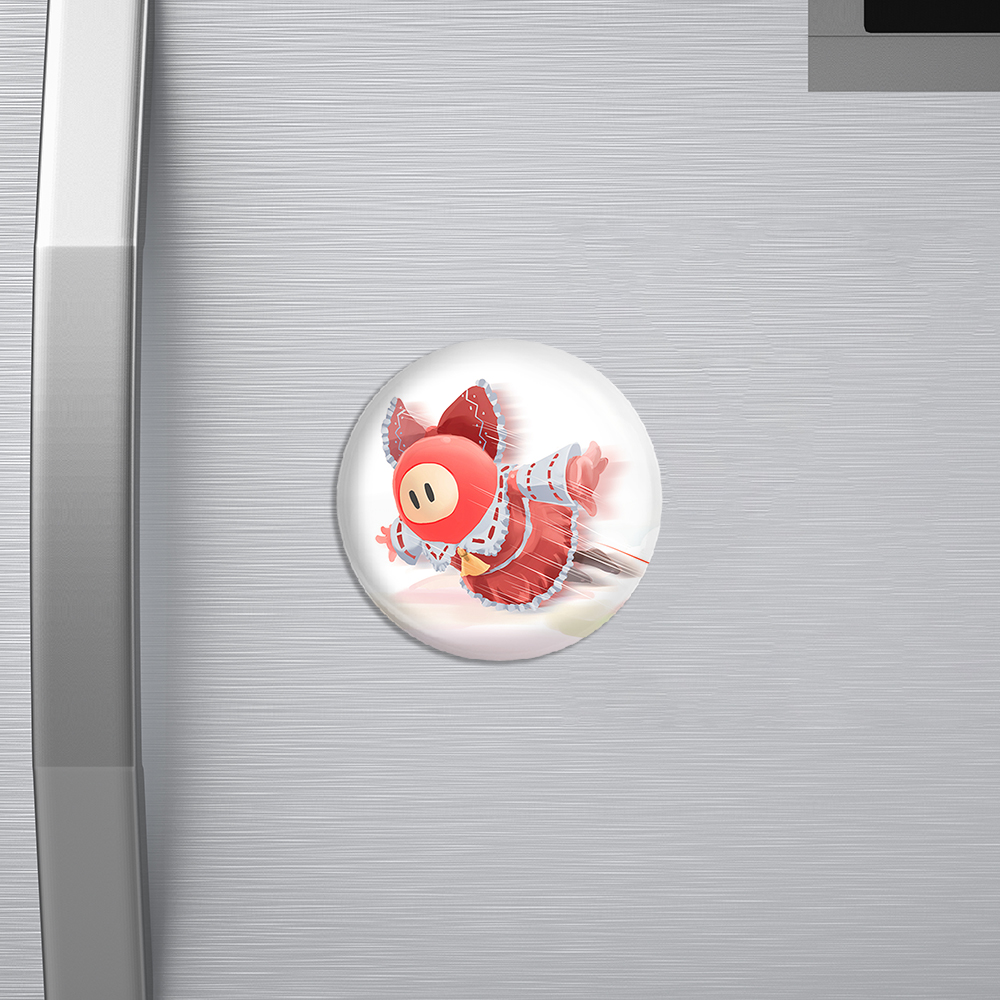 مگنت بازی فال گایز (Fall Guys) خندالو با روکش سلفون مات مخملی ضدخش و قطعه پشتی فلزی تولید شده است که آهنربای اتمی بکار برده شده در محصول، بصورت مخفی تعبیه شده ودیده نمی شود. ضمن اینکه گیرایی بسیار بالایی داشته و به هیچ عنوان از روی یخچال نمی افتد.