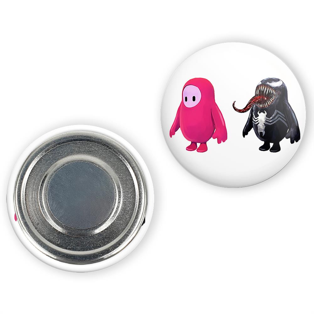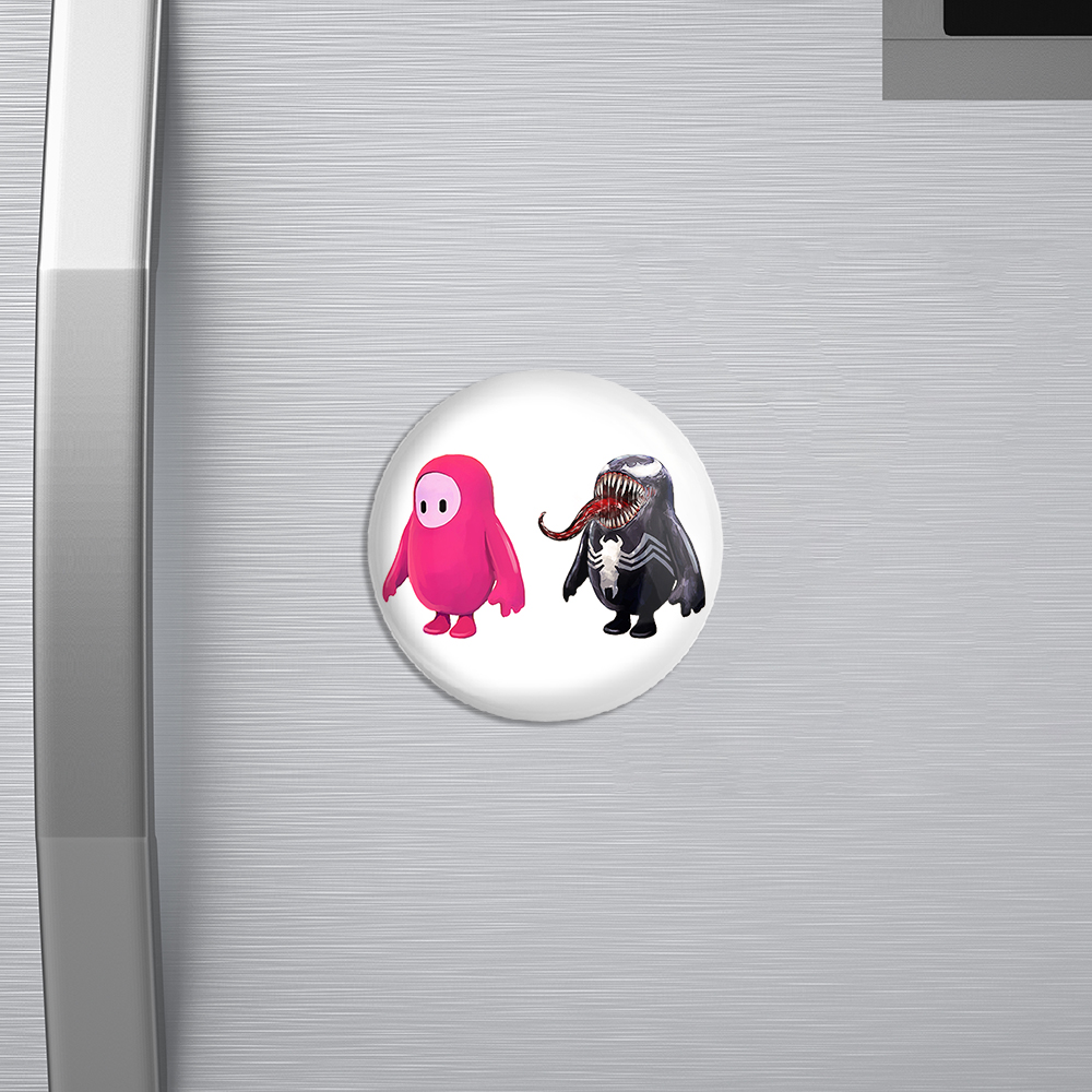 مگنت بازی فال گایز (Fall Guys) خندالو با روکش سلفون مات مخملی ضدخش و قطعه پشتی فلزی تولید شده است که آهنربای اتمی بکار برده شده در محصول، بصورت مخفی تعبیه شده ودیده نمی شود. ضمن اینکه گیرایی بسیار بالایی داشته و به هیچ عنوان از روی یخچال نمی افتد.