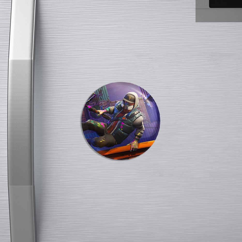 مگنت بازی فورتنایت Fortnite خندالو با روکش سلفون مات مخملی ضدخش و قطعه پشتی فلزی تولید شده است که آهنربای اتمی بکار برده شده در محصول، بصورت مخفی تعبیه شده ودیده نمی شود. ضمن اینکه گیرایی بسیار بالایی داشته و به هیچ عنوان از روی یخچال نمی افتد.