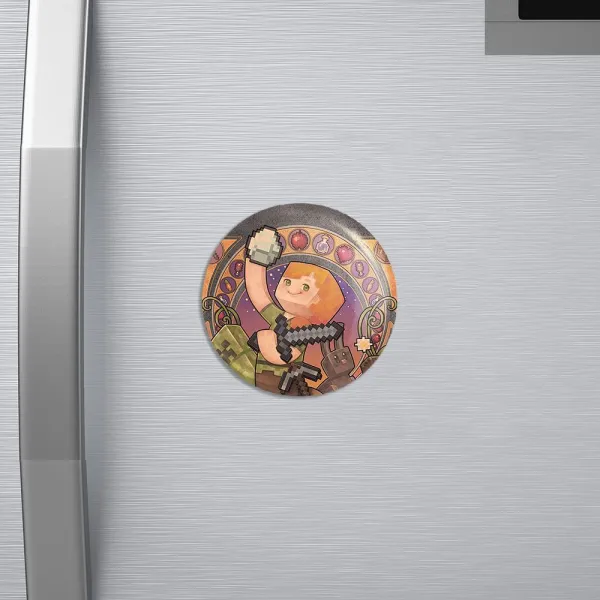 مگنت بازی ماینکرافت Minecraft خندالو با روکش سلفون مات مخملی ضدخش و قطعه پشتی فلزی تولید شده است که آهنربای اتمی بکار برده شده در محصول، بصورت مخفی تعبیه شده ودیده نمی شود. ضمن اینکه گیرایی بسیار بالایی داشته و به هیچ عنوان از روی یخچال نمی افتد.