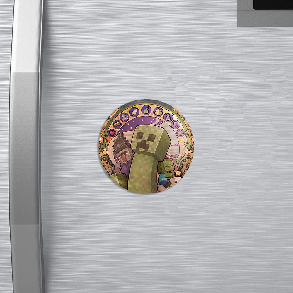 مگنت بازی ماینکرافت Minecraft خندالو با روکش سلفون مات مخملی ضدخش و قطعه پشتی فلزی تولید شده است که آهنربای اتمی بکار برده شده در محصول، بصورت مخفی تعبیه شده ودیده نمی شود. ضمن اینکه گیرایی بسیار بالایی داشته و به هیچ عنوان از روی یخچال نمی افتد.