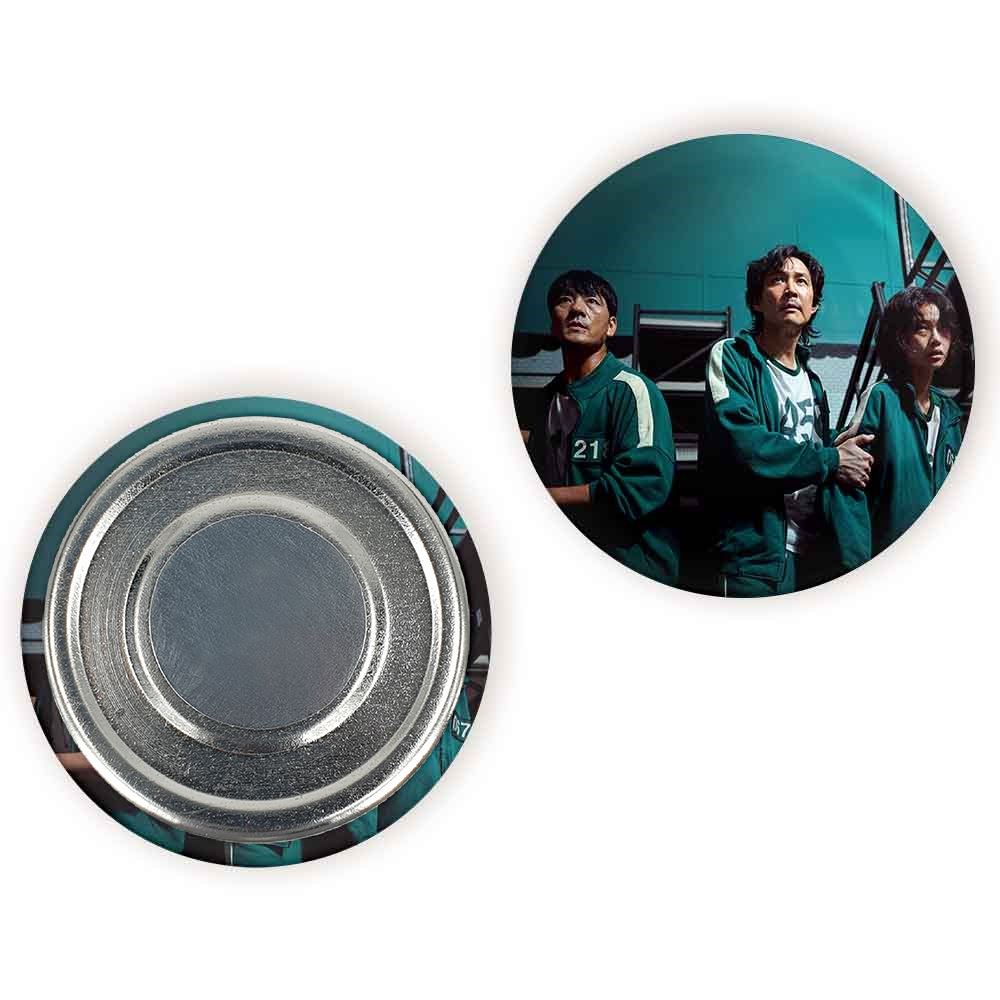 مگنت بازی مرکب Squid Game خندالو با روکش سلفون مات مخملی ضدخش و قطعه پشتی فلزی تولید شده است که آهنربای اتمی بکار برده شده در محصول، بصورت مخفی تعبیه شده ودیده نمی شود. ضمن اینکه گیرایی بسیار بالایی داشته و به هیچ عنوان از روی یخچال نمی افتد.