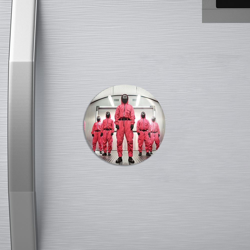 مگنت بازی مرکب Squid Game خندالو با روکش سلفون مات مخملی ضدخش و قطعه پشتی فلزی تولید شده است که آهنربای اتمی بکار برده شده در محصول، بصورت مخفی تعبیه شده ودیده نمی شود. ضمن اینکه گیرایی بسیار بالایی داشته و به هیچ عنوان از روی یخچال نمی افتد.