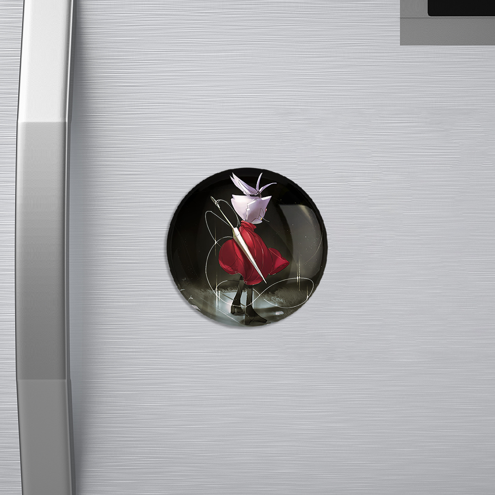 مگنت بازی هالو نایت (Hollow Knight) خندالو با روکش سلفون مات مخملی ضدخش و قطعه پشتی فلزی تولید شده است که آهنربای اتمی بکار برده شده در محصول، بصورت مخفی تعبیه شده ودیده نمی شود. ضمن اینکه گیرایی بسیار بالایی داشته و به هیچ عنوان از روی یخچال نمی افتد.