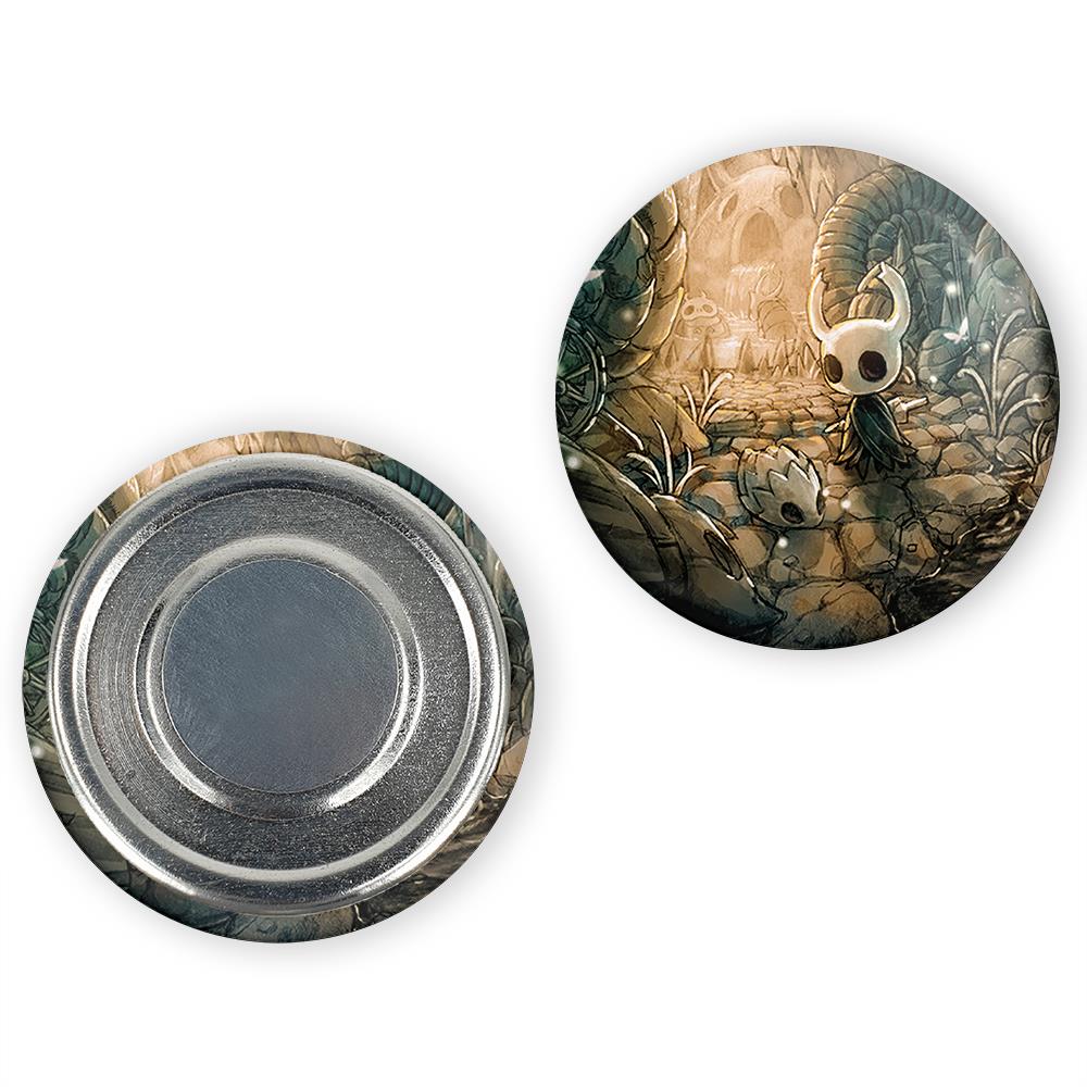 مگنت بازی هالو نایت (Hollow Knight) خندالو با روکش سلفون مات مخملی ضدخش و قطعه پشتی فلزی تولید شده است که آهنربای اتمی بکار برده شده در محصول، بصورت مخفی تعبیه شده ودیده نمی شود. ضمن اینکه گیرایی بسیار بالایی داشته و به هیچ عنوان از روی یخچال نمی افتد.