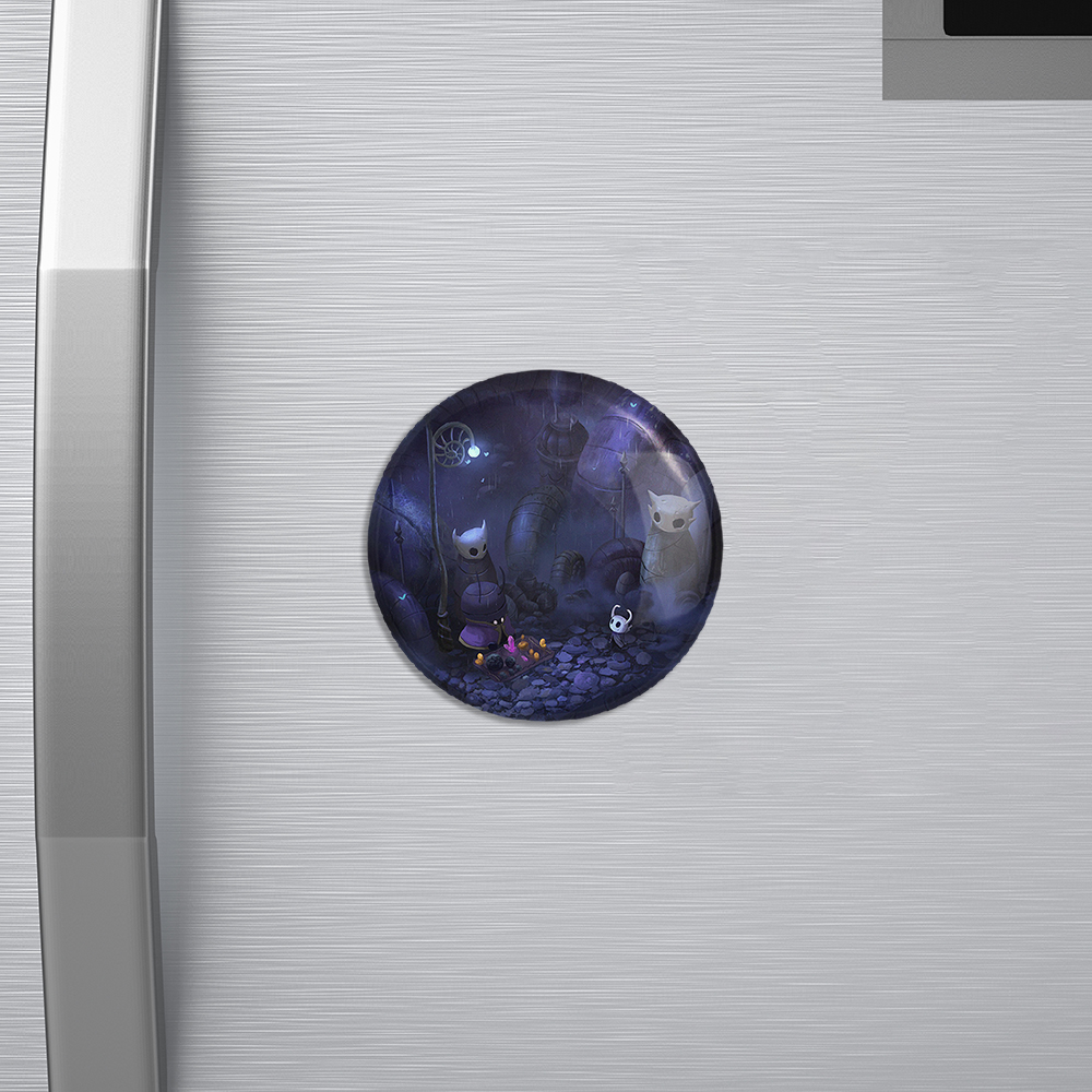 مگنت بازی هالو نایت (Hollow Knight) خندالو با روکش سلفون مات مخملی ضدخش و قطعه پشتی فلزی تولید شده است که آهنربای اتمی بکار برده شده در محصول، بصورت مخفی تعبیه شده ودیده نمی شود. ضمن اینکه گیرایی بسیار بالایی داشته و به هیچ عنوان از روی یخچال نمی افتد.
