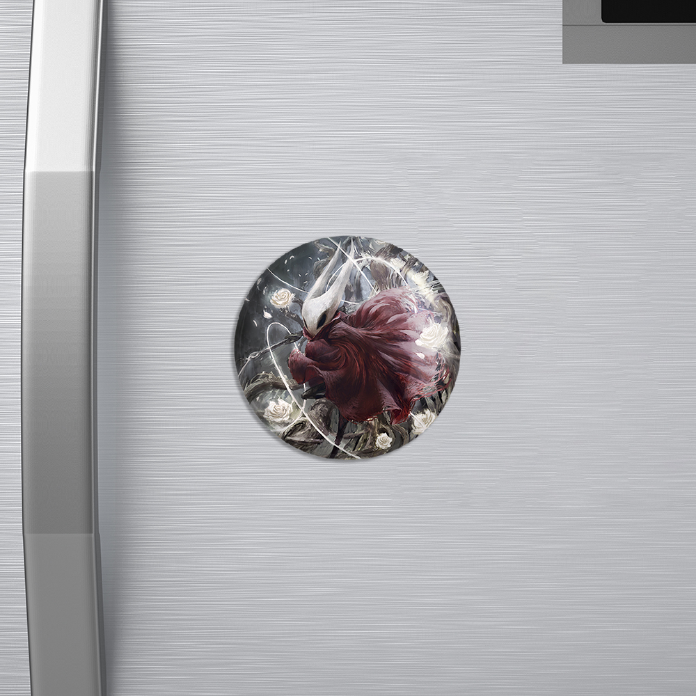 مگنت بازی هالو نایت (Hollow Knight) خندالو با روکش سلفون مات مخملی ضدخش و قطعه پشتی فلزی تولید شده است که آهنربای اتمی بکار برده شده در محصول، بصورت مخفی تعبیه شده ودیده نمی شود. ضمن اینکه گیرایی بسیار بالایی داشته و به هیچ عنوان از روی یخچال نمی افتد.