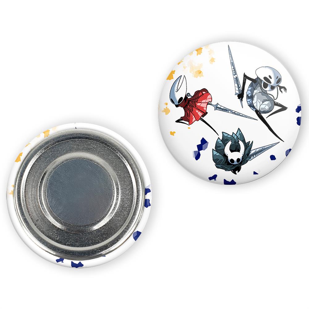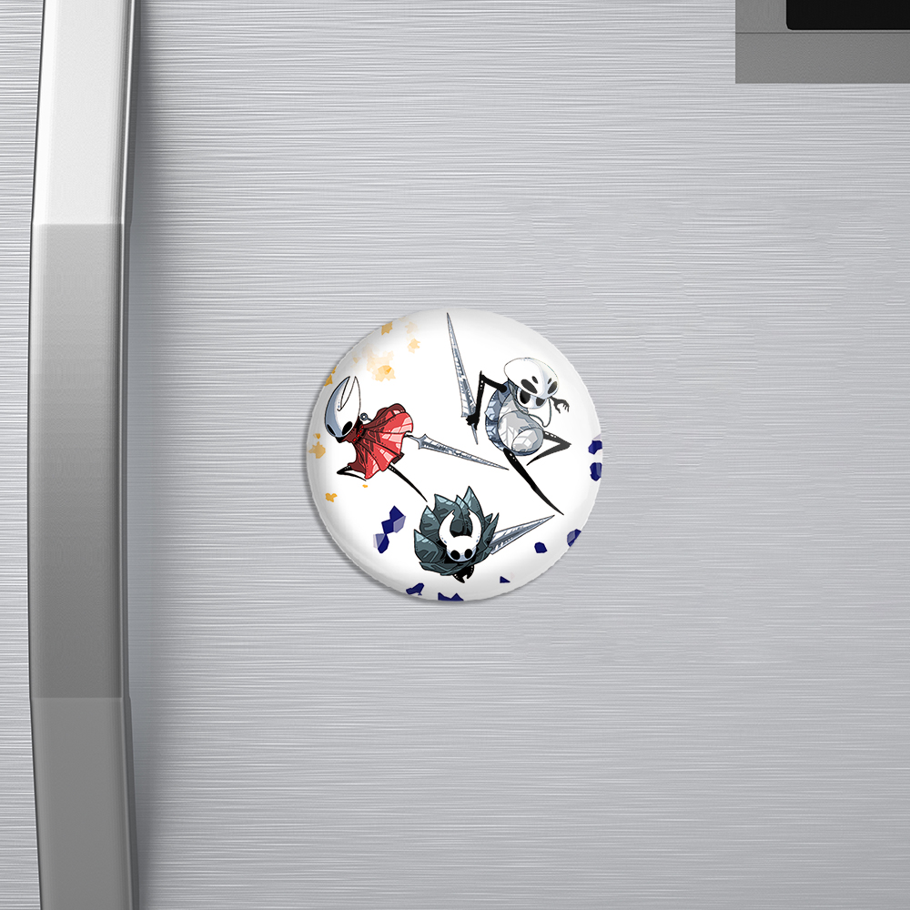 مگنت بازی هالو نایت (Hollow Knight) خندالو با روکش سلفون مات مخملی ضدخش و قطعه پشتی فلزی تولید شده است که آهنربای اتمی بکار برده شده در محصول، بصورت مخفی تعبیه شده ودیده نمی شود. ضمن اینکه گیرایی بسیار بالایی داشته و به هیچ عنوان از روی یخچال نمی افتد.