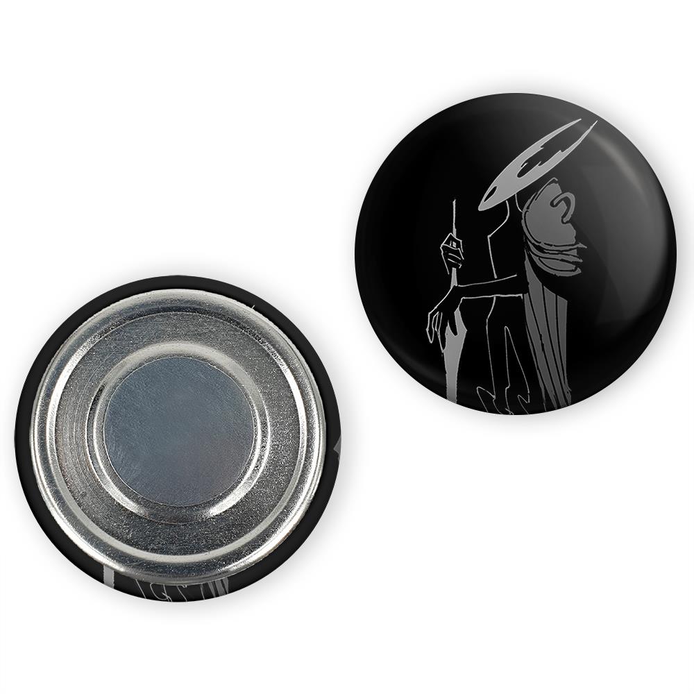 مگنت بازی هالو نایت (Hollow Knight) خندالو با روکش سلفون مات مخملی ضدخش و قطعه پشتی فلزی تولید شده است که آهنربای اتمی بکار برده شده در محصول، بصورت مخفی تعبیه شده ودیده نمی شود. ضمن اینکه گیرایی بسیار بالایی داشته و به هیچ عنوان از روی یخچال نمی افتد.