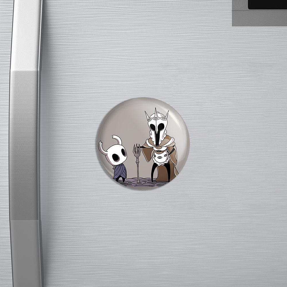 مگنت بازی هالو نایت (Hollow Knight) خندالو با روکش سلفون مات مخملی ضدخش و قطعه پشتی فلزی تولید شده است که آهنربای اتمی بکار برده شده در محصول، بصورت مخفی تعبیه شده ودیده نمی شود. ضمن اینکه گیرایی بسیار بالایی داشته و به هیچ عنوان از روی یخچال نمی افتد.