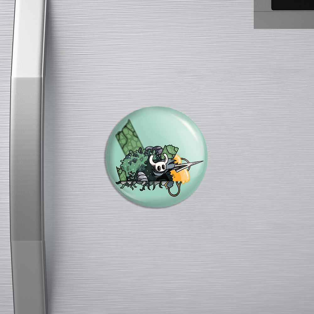 مگنت بازی هالو نایت (Hollow Knight) خندالو با روکش سلفون مات مخملی ضدخش و قطعه پشتی فلزی تولید شده است که آهنربای اتمی بکار برده شده در محصول، بصورت مخفی تعبیه شده ودیده نمی شود. ضمن اینکه گیرایی بسیار بالایی داشته و به هیچ عنوان از روی یخچال نمی افتد.