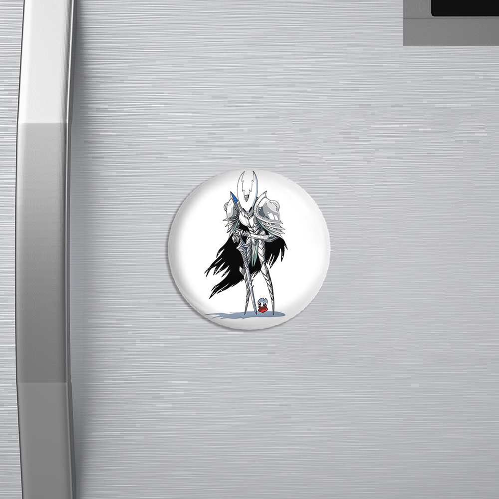 مگنت بازی هالو نایت (Hollow Knight) خندالو با روکش سلفون مات مخملی ضدخش و قطعه پشتی فلزی تولید شده است که آهنربای اتمی بکار برده شده در محصول، بصورت مخفی تعبیه شده ودیده نمی شود. ضمن اینکه گیرایی بسیار بالایی داشته و به هیچ عنوان از روی یخچال نمی افتد.