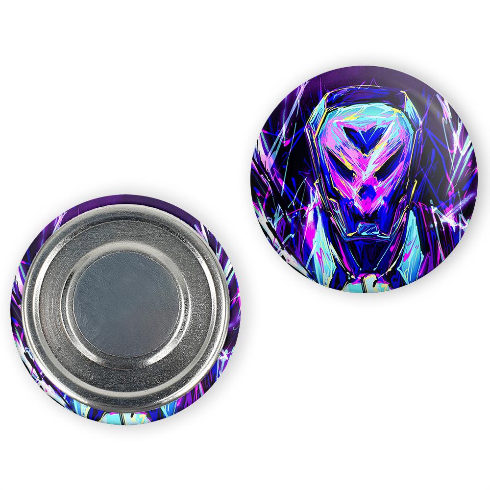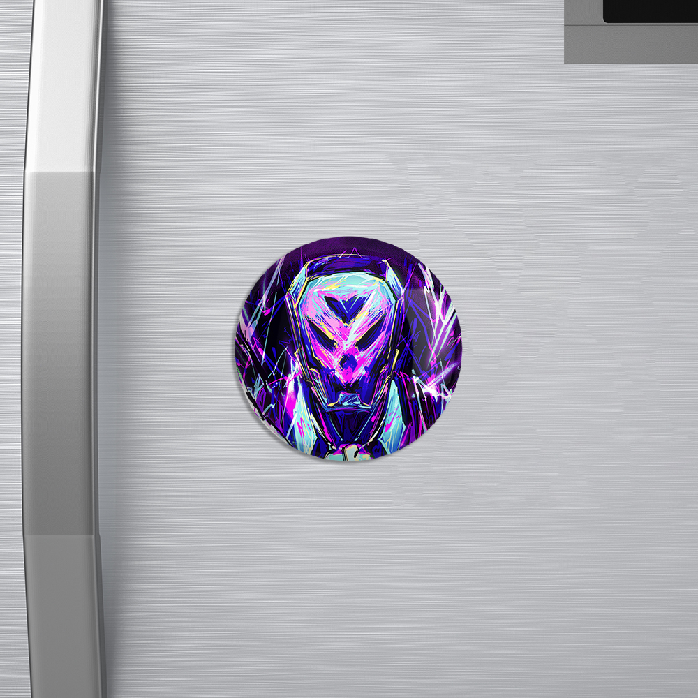 مگنت بازی ولورانت (Valorant) خندالو با روکش سلفون مات مخملی ضدخش و قطعه پشتی فلزی تولید شده است که آهنربای اتمی بکار برده شده در محصول، بصورت مخفی تعبیه شده ودیده نمی شود. ضمن اینکه گیرایی بسیار بالایی داشته و به هیچ عنوان از روی یخچال نمی افتد.