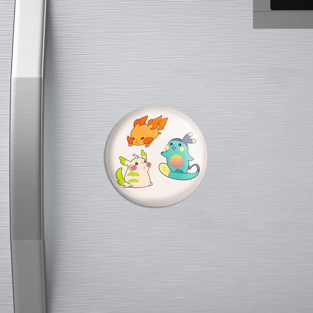 مگنت بازی پوکمون (pokemon) خندالو با روکش سلفون مات مخملی ضدخش و قطعه پشتی فلزی تولید شده است که آهنربای اتمی بکار برده شده در محصول، بصورت مخفی تعبیه شده ودیده نمی شود. ضمن اینکه گیرایی بسیار بالایی داشته و به هیچ عنوان از روی یخچال نمی افتد.