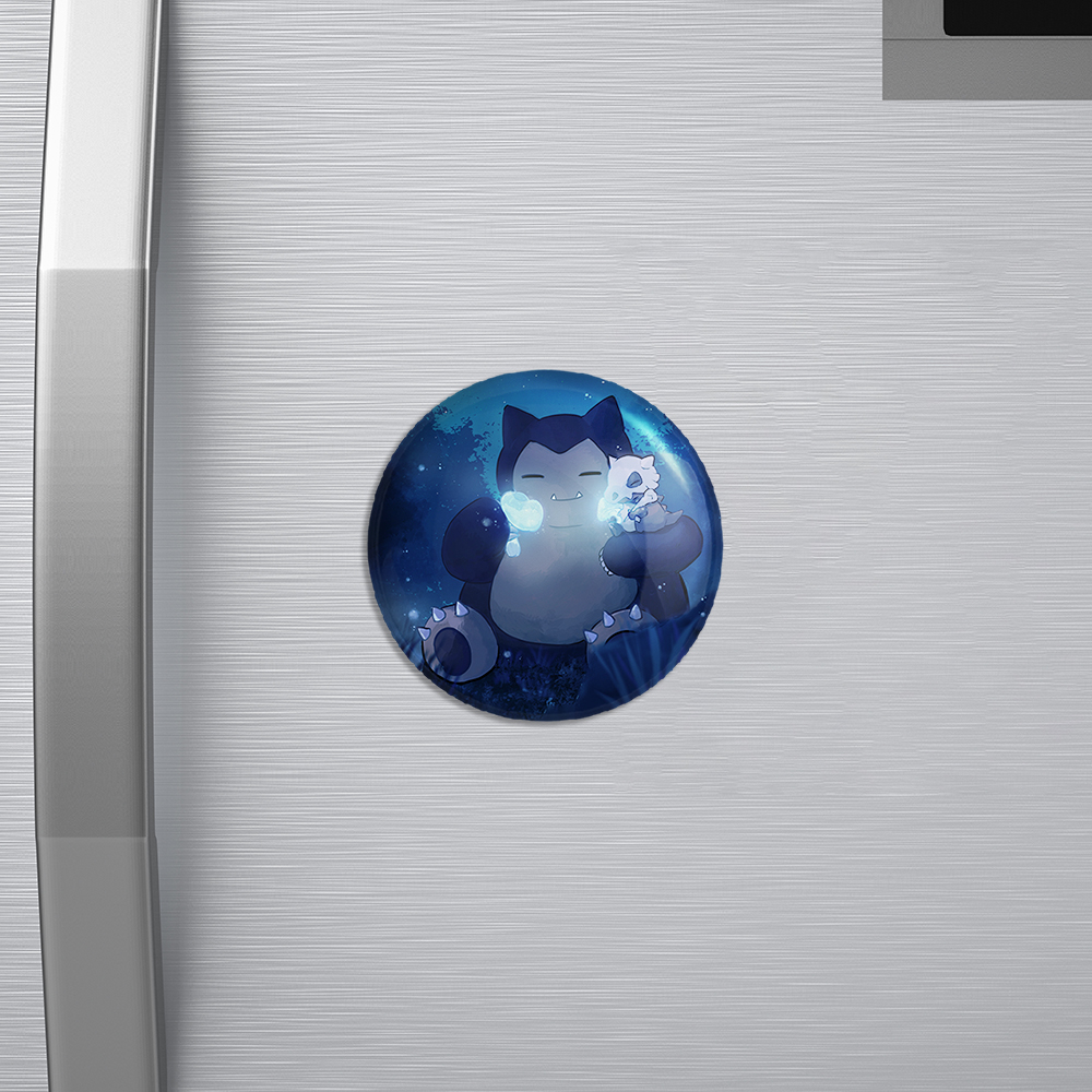 مگنت بازی پوکمون (pokemon) خندالو با روکش سلفون مات مخملی ضدخش و قطعه پشتی فلزی تولید شده است که آهنربای اتمی بکار برده شده در محصول، بصورت مخفی تعبیه شده ودیده نمی شود. ضمن اینکه گیرایی بسیار بالایی داشته و به هیچ عنوان از روی یخچال نمی افتد.