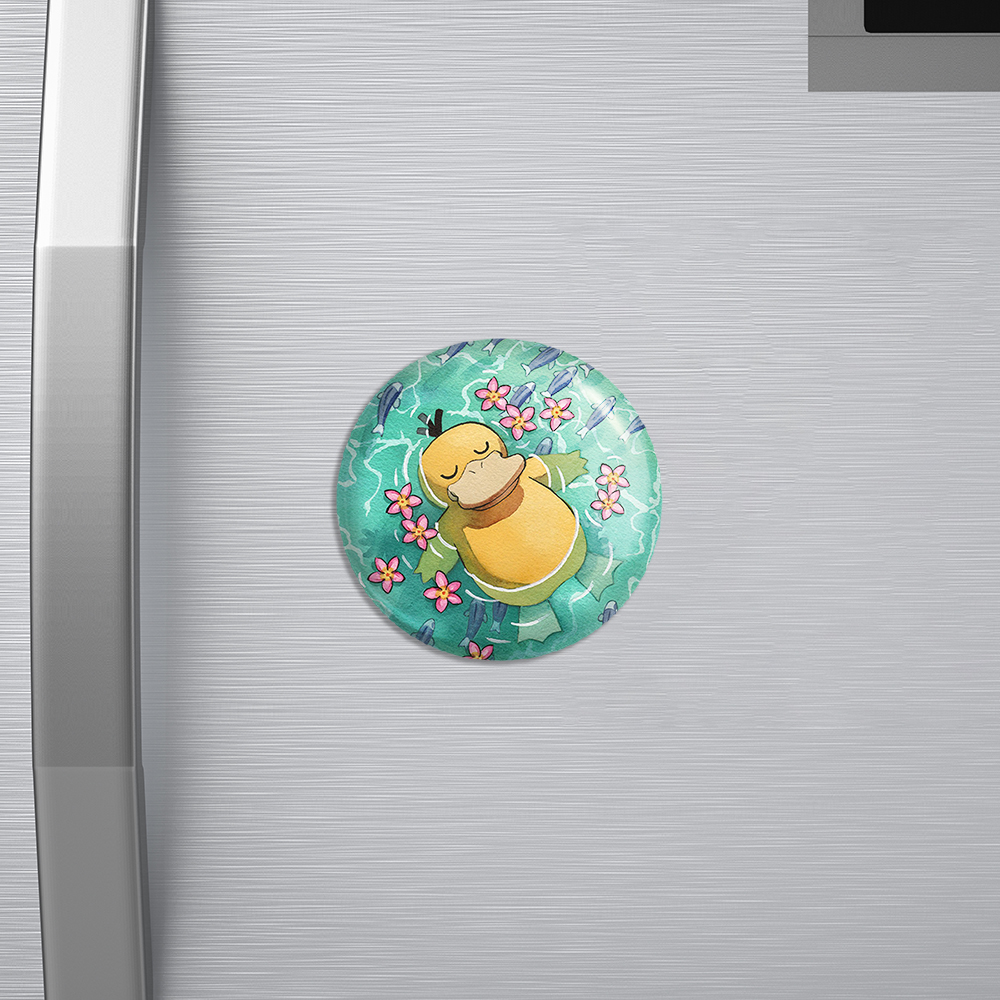 مگنت بازی پوکمون (pokemon) خندالو با روکش سلفون مات مخملی ضدخش و قطعه پشتی فلزی تولید شده است که آهنربای اتمی بکار برده شده در محصول، بصورت مخفی تعبیه شده ودیده نمی شود. ضمن اینکه گیرایی بسیار بالایی داشته و به هیچ عنوان از روی یخچال نمی افتد.