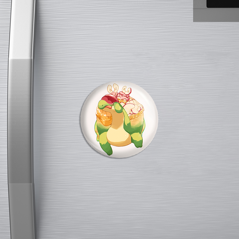 مگنت بازی پوکمون (pokemon) خندالو با روکش سلفون مات مخملی ضدخش و قطعه پشتی فلزی تولید شده است که آهنربای اتمی بکار برده شده در محصول، بصورت مخفی تعبیه شده ودیده نمی شود. ضمن اینکه گیرایی بسیار بالایی داشته و به هیچ عنوان از روی یخچال نمی افتد.