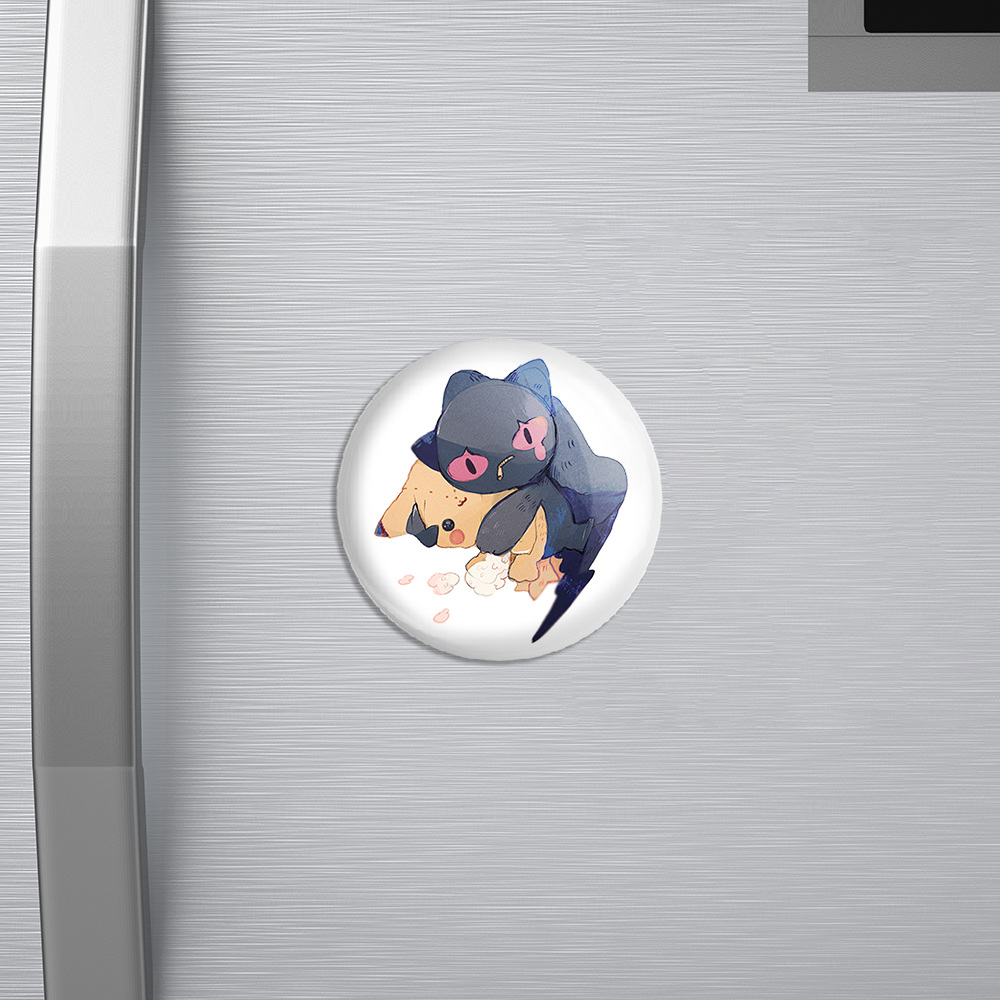 مگنت بازی پوکمون (pokemon) خندالو با روکش سلفون مات مخملی ضدخش و قطعه پشتی فلزی تولید شده است که آهنربای اتمی بکار برده شده در محصول، بصورت مخفی تعبیه شده ودیده نمی شود. ضمن اینکه گیرایی بسیار بالایی داشته و به هیچ عنوان از روی یخچال نمی افتد.