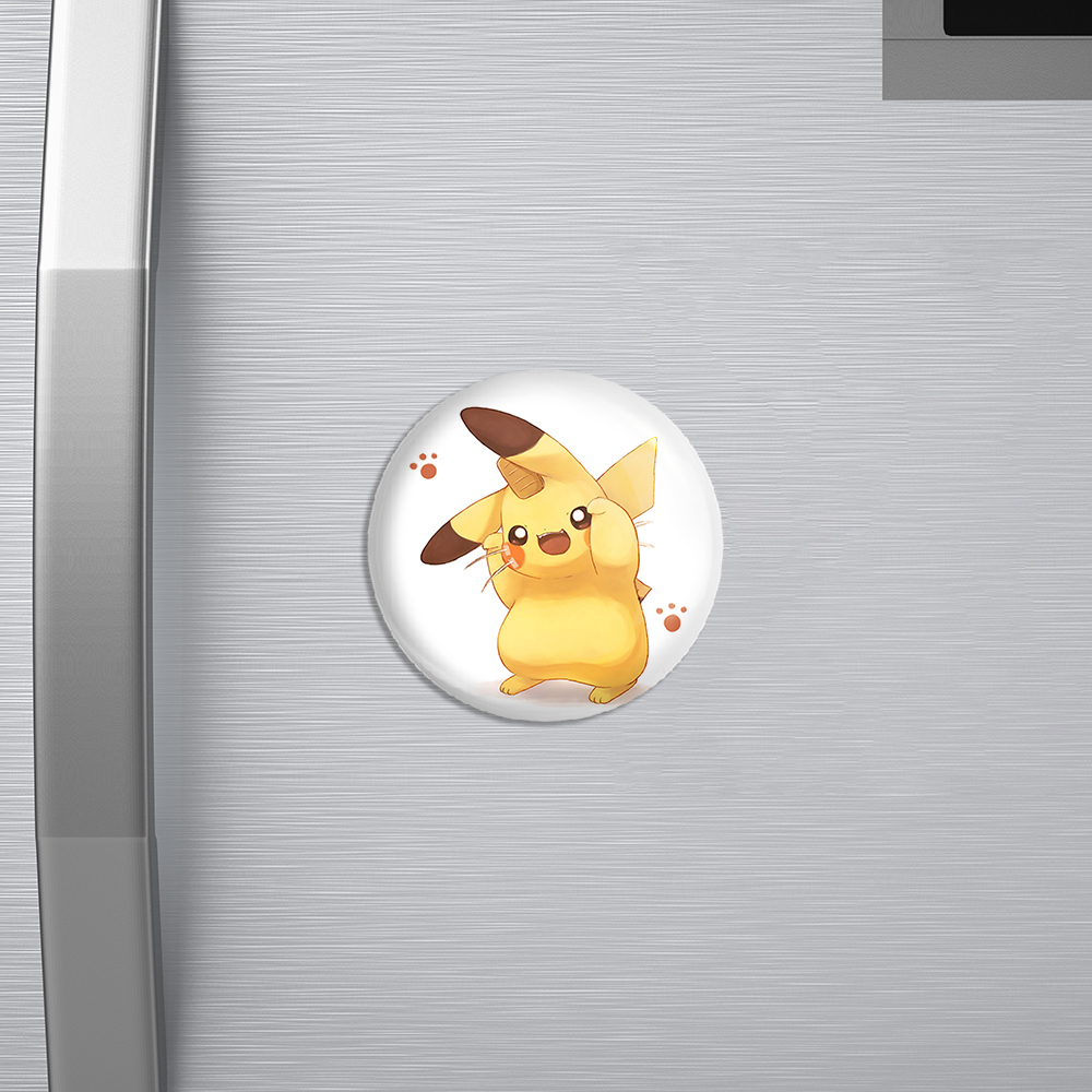 مگنت بازی پوکمون (pokemon) خندالو با روکش سلفون مات مخملی ضدخش و قطعه پشتی فلزی تولید شده است که آهنربای اتمی بکار برده شده در محصول، بصورت مخفی تعبیه شده ودیده نمی شود. ضمن اینکه گیرایی بسیار بالایی داشته و به هیچ عنوان از روی یخچال نمی افتد.