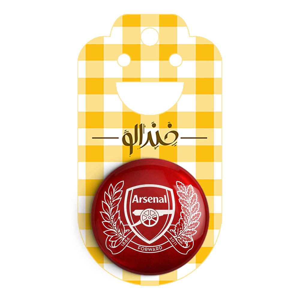مگنت باشگاه آرسنال خندالو با روکش سلفون مات مخملی ضدخش و قطعه پشتی فلزی تولید شده است که آهنربای اتمی بکار برده شده در محصول، بصورت مخفی تعبیه شده ودیده نمی شود. ضمن اینکه گیرایی بسیار بالایی داشته و به هیچ عنوان از روی یخچال نمی افتد.