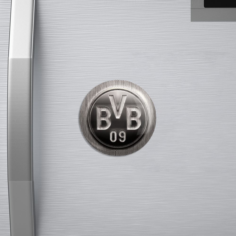 مگنت باشگاه دورتموند خندالو با روکش سلفون مات مخملی ضدخش و قطعه پشتی فلزی تولید شده است که آهنربای اتمی بکار برده شده در محصول، بصورت مخفی تعبیه شده ودیده نمی شود. ضمن اینکه گیرایی بسیار بالایی داشته و به هیچ عنوان از روی یخچال نمی افتد.