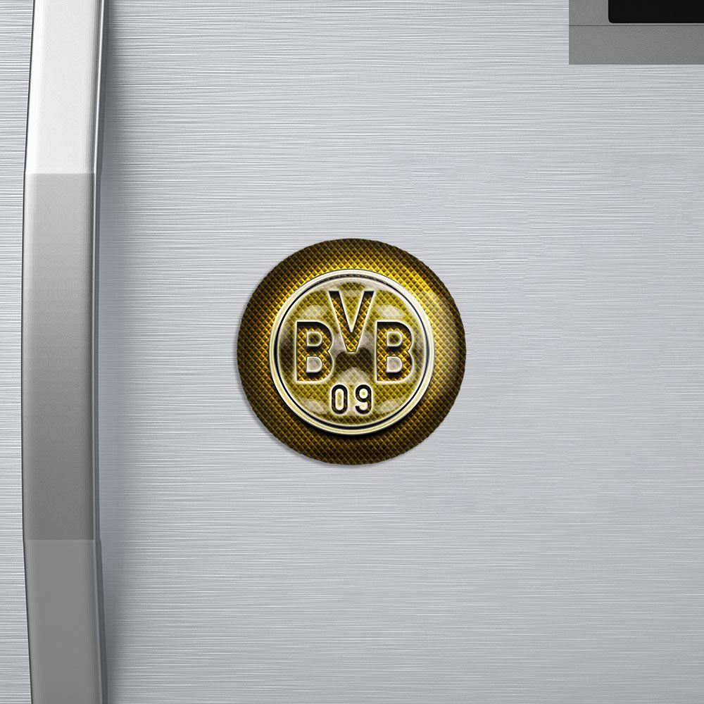 مگنت باشگاه دورتموند خندالو با روکش سلفون مات مخملی ضدخش و قطعه پشتی فلزی تولید شده است که آهنربای اتمی بکار برده شده در محصول، بصورت مخفی تعبیه شده ودیده نمی شود. ضمن اینکه گیرایی بسیار بالایی داشته و به هیچ عنوان از روی یخچال نمی افتد.