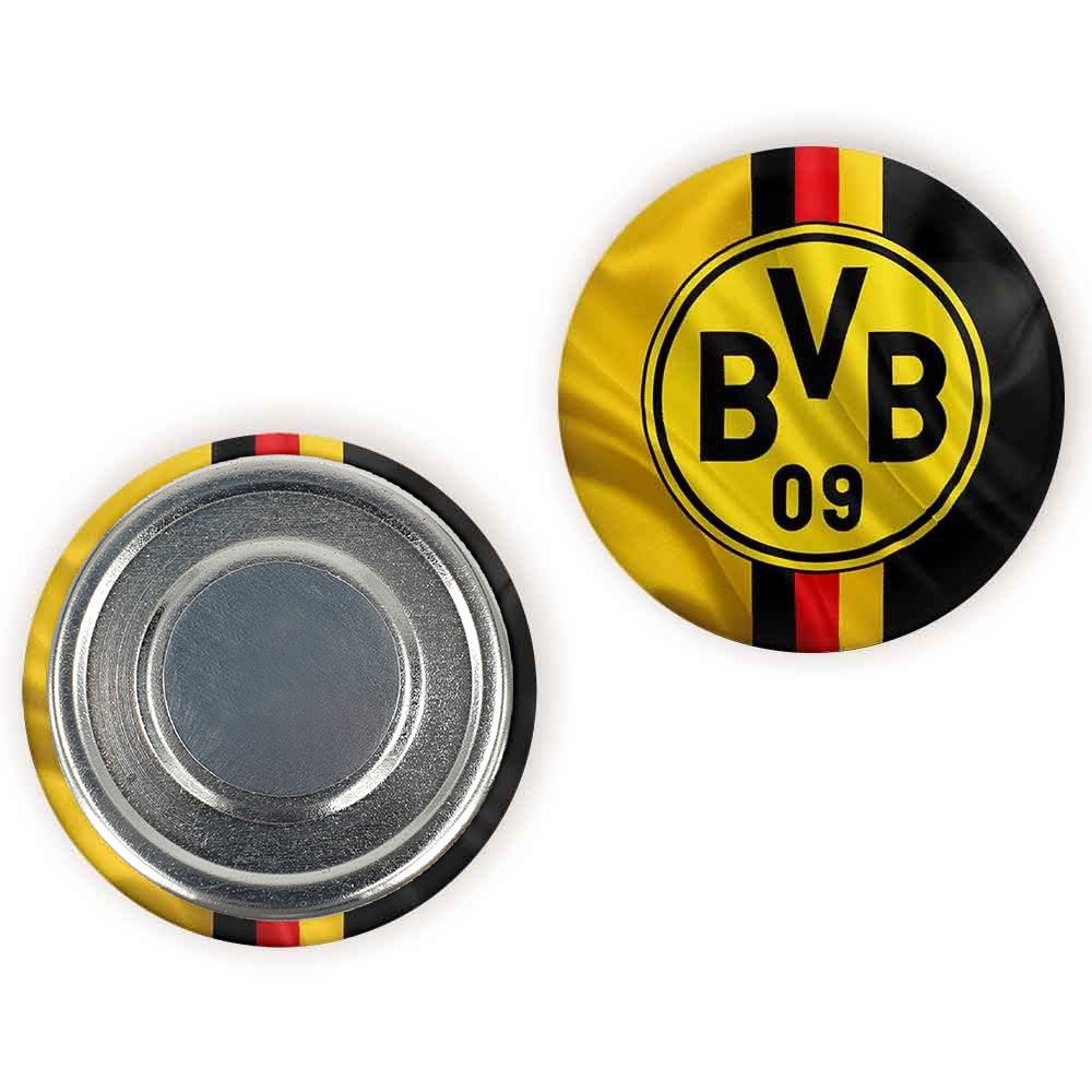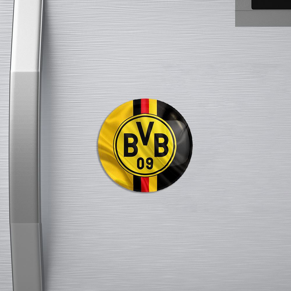 مگنت باشگاه دورتموند خندالو با روکش سلفون مات مخملی ضدخش و قطعه پشتی فلزی تولید شده است که آهنربای اتمی بکار برده شده در محصول، بصورت مخفی تعبیه شده ودیده نمی شود. ضمن اینکه گیرایی بسیار بالایی داشته و به هیچ عنوان از روی یخچال نمی افتد.