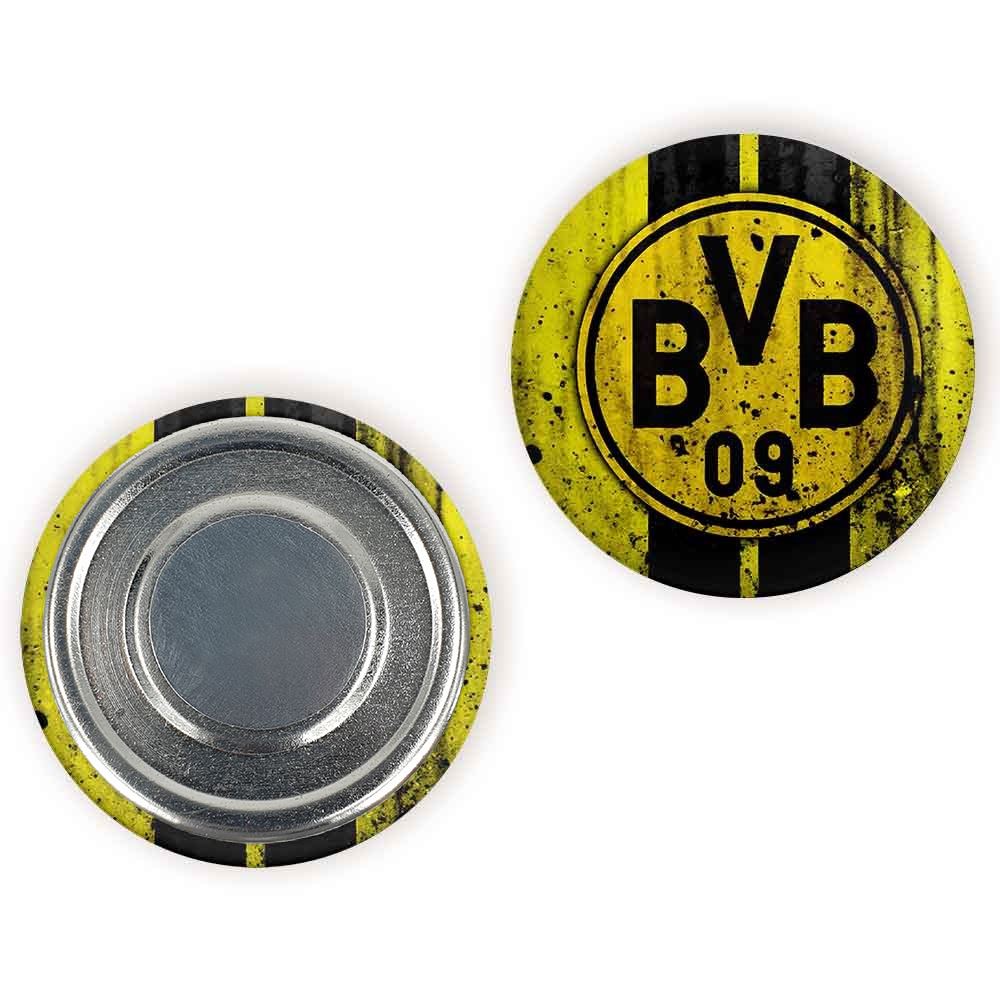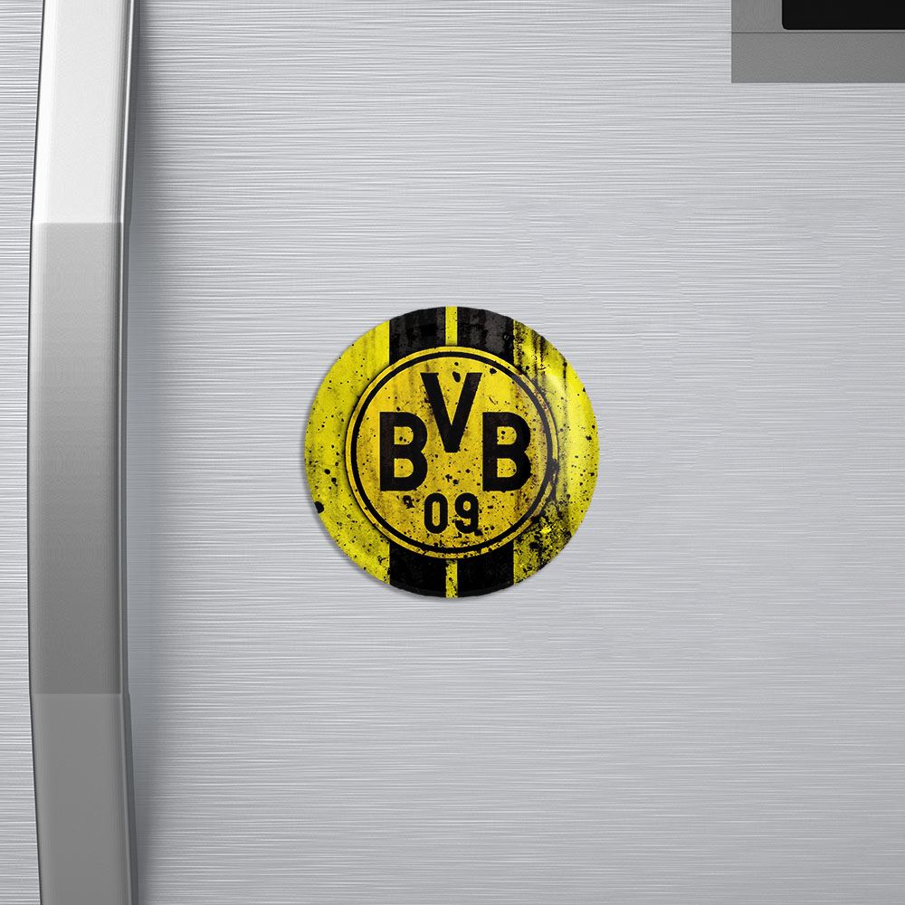 مگنت باشگاه دورتموند خندالو با روکش سلفون مات مخملی ضدخش و قطعه پشتی فلزی تولید شده است که آهنربای اتمی بکار برده شده در محصول، بصورت مخفی تعبیه شده ودیده نمی شود. ضمن اینکه گیرایی بسیار بالایی داشته و به هیچ عنوان از روی یخچال نمی افتد.