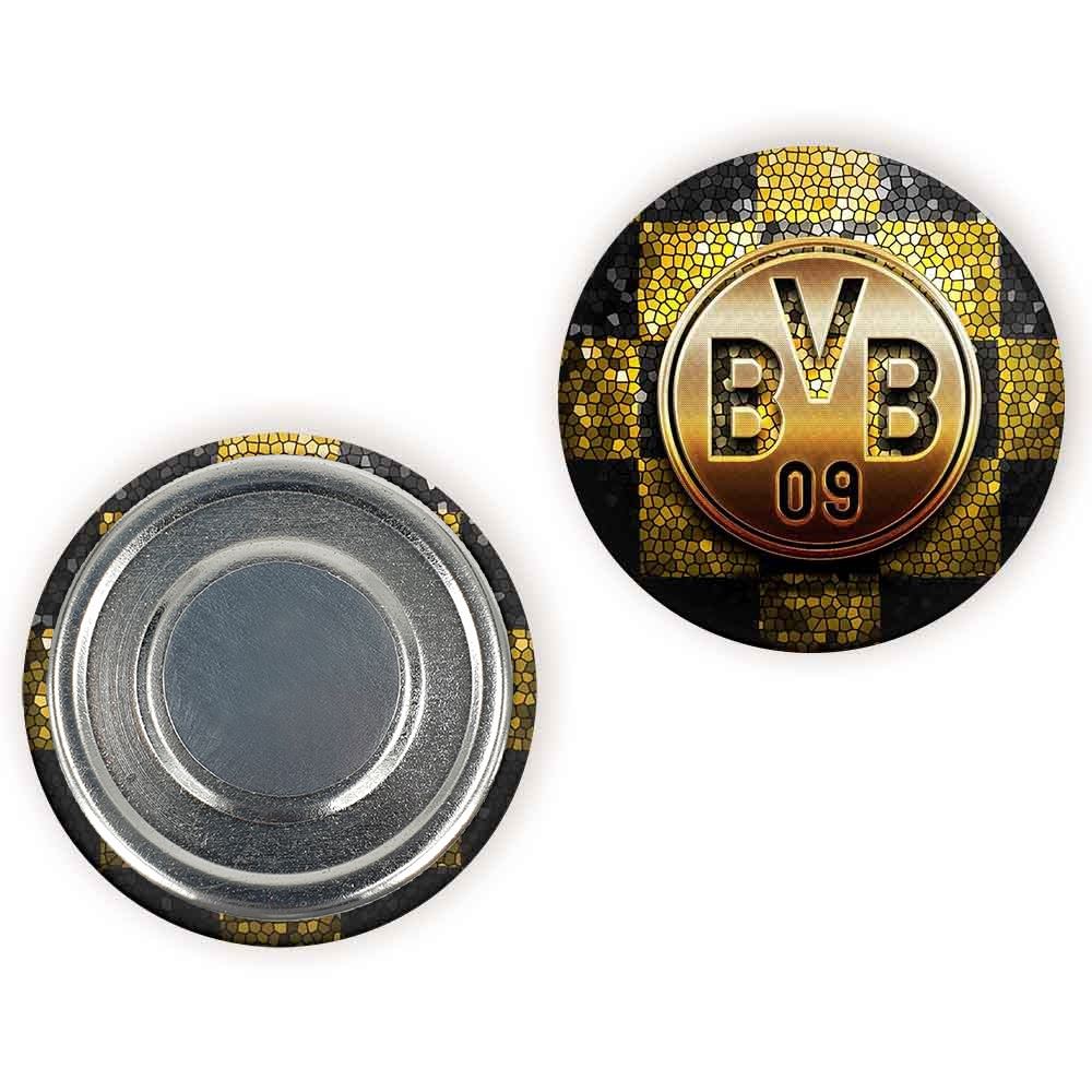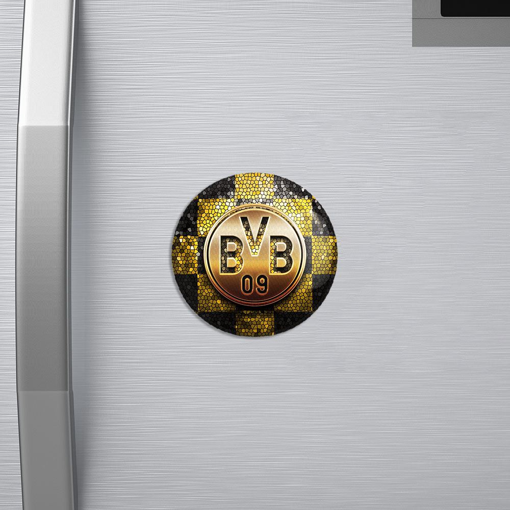 مگنت باشگاه دورتموند خندالو با روکش سلفون مات مخملی ضدخش و قطعه پشتی فلزی تولید شده است که آهنربای اتمی بکار برده شده در محصول، بصورت مخفی تعبیه شده ودیده نمی شود. ضمن اینکه گیرایی بسیار بالایی داشته و به هیچ عنوان از روی یخچال نمی افتد.